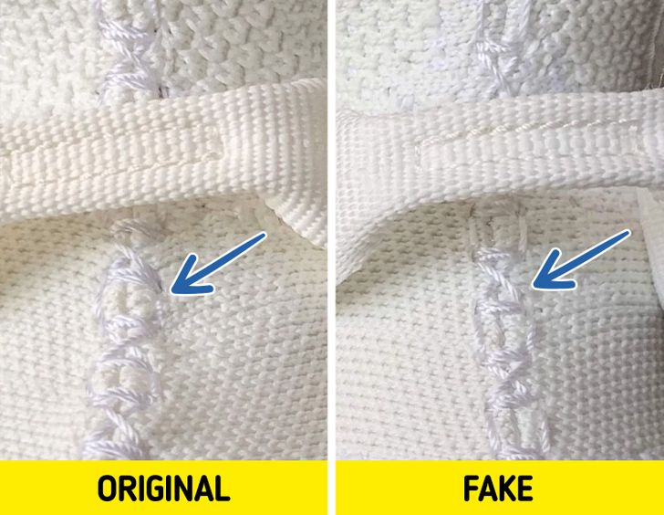 Η ποιότητα των αυθεντικών και ακριβών αντικειμένων διαφέρει επίσης. Το ράψιμο είναι πολύ πιο καθαρό και αυστηρότερο στα αυθεντικά ρούχα, σε αντίθεση με τα αντίστοιχα πλαστά. Τα γνήσια ρούχα και παπούτσια έχουν συχνά περισσότερες ραφές ανά τετραγωνικό εκατοστό. Οι γραμμές δεν θα είναι τόσο ευθείες, επειδή πιθανότατα χρησιμοποιούν λιγότερο υλικό καθώς κοστίζει λιγότερο.