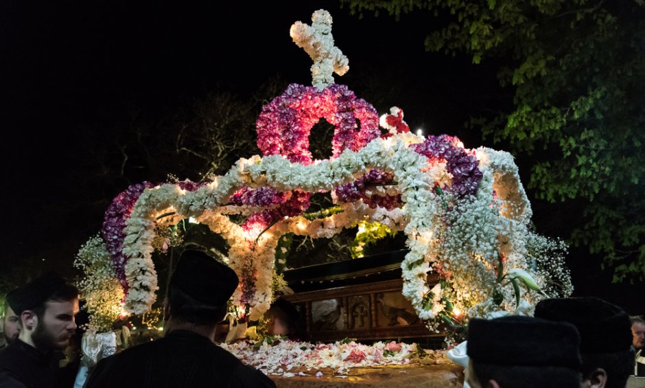 Από το βράδυ της Μεγάλης Πέμπτης έως το πρωί της Μ. Παρασκευής στολίζεται ο επιτάφιος από τους πιστούς.