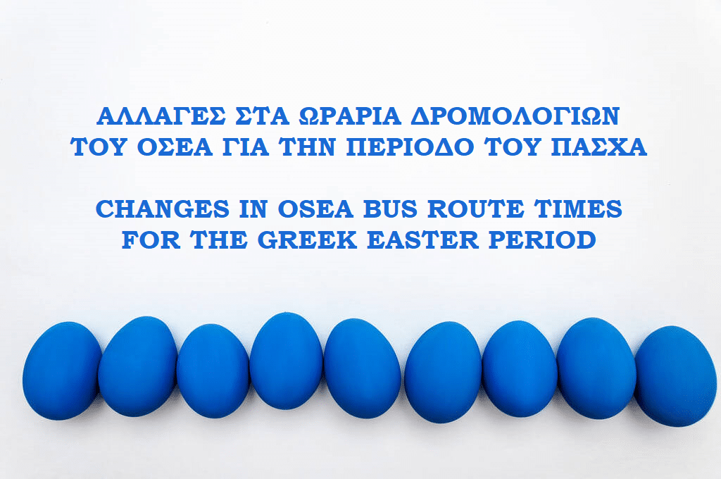 Λόγω των αργιών του Πάσχα, τις πιο κάτω μέρες όλα τα δρομολόγια του ΟΣΕΑ θα εκτελούνται με τα ωράρια που ισχύουν για τα Σάββατα και τις Κυριακές