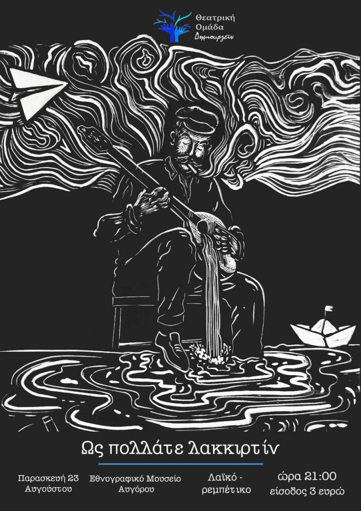 Το υπαίθριο καφενείο “Ως Πολλάτε Λακκιρτίν”, της Θεατρικής Ομάδας “Δημιουργείν” ανοίγει ξανά την πόρτα του την Παρασκευή 23 Αυγούστου η ώρα 21:00 στο Εθνογραφικό Μουσείο Αυγόρου.