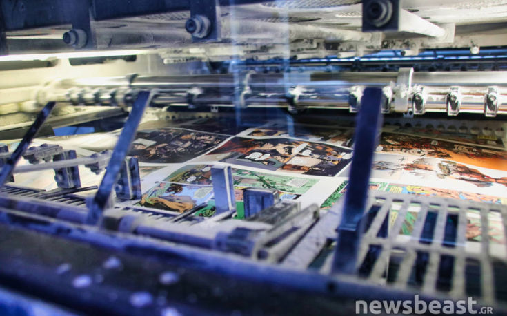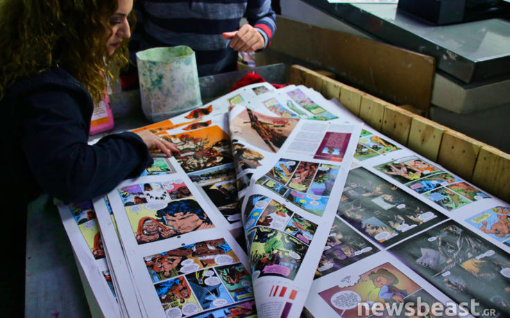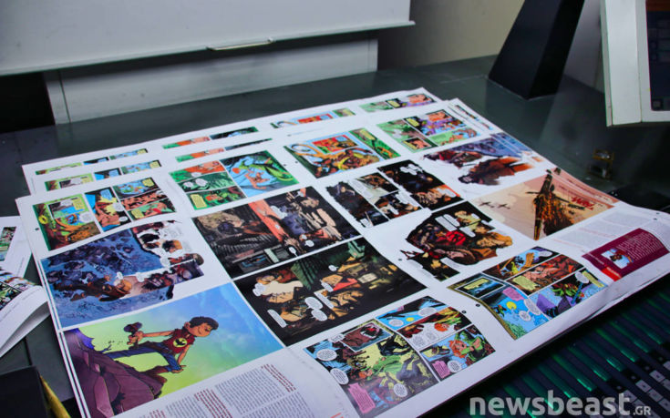 Θα λέγαμε ότι ξεκινάει από τη σύλληψη του τι θέλουμε να εκδώσουμε. Έτσι λοιπόν, με το συνεργάτη μου, Γαβριήλ Τομπαλίδη, συζητάμε για επιμέρους χαρακτήρες ή ιστορίες που θα θέλαμε να εκδοθούν και στη συνέχεια ερχόμαστε σε επαφή με τους οίκους -που είναι κατά βάση ξένοι- από τους οποίους εξασφαλίζουμε τα δικαιώματα έκδοσης τους. Πολύ σημαντικό στάδιο είναι μια μαθηματική επεξεργασία στη συνέχεια, έτσι ώστε αφού λάβουμε υπόψη όλα τα κόστη και γνωρίζοντας τις προδιαγραφές της έκδοσης, να μάθουμε τον αριθμό των φύλλων πάνω από το οποίο βγαίνει κέρδος. Γενικά και λόγω εποχής, αποφεύγουμε τα μεγάλα ρίσκα. Αφού κλειστούν τα δικαιώματα, ακολουθεί η διαδικασία της μετάφρασης. Στη συνέχεια, ακολουθεί το πρώτο στάδιο της κειμενικής επιμέλειας, το οποίο γίνεται επάνω στο αρχικό word και κατόπιν το περιοδικό στήνεται κανονικά, δηλαδή σελιδοποείται από τη γραφίστρια μας. Αυτό είναι ένα αρκετά χρονοβόρο στάδιο και περιλαμβάνει διάφορες διαδικασίες όπως το lettering -δηλαδή την εισαγωγή του κειμένου στα μπαλονάκια-, τον χρωματισμό -εάν απαιτείται-, τη δημιουργία όμορφων, εικαστικά, άρθρων, που συνήθως συνοδεύουν τις εκδόσεις μας, τη δημιουργία των εξωφύλλων και άλλα. Ακολουθούν άλλες 3 επιμέλειες επάνω στο στημένο περιοδικό, προτού αυτό κλείσει σε pdf τελειωτικά. Το κλειστό pdf παίρνει το δρόμο του τυπογραφείου. Η τυπογραφική διαδικασία περιλαμβάνει το προεκτυπωτικό στάδιο, δηλαδή το μοντάζ, που είναι η συναρμολόγηση των σελίδων ενός εντύπου, την εκτύπωση δοκιμίου για να δούμε ότι πληροί τα απαιτούμενα ποιοτικά στάνταρντς, την εκτύπωση σώματος και εξωφύλλου και τη βιβλιοδεσία – το δέσιμο σώματος και εξωφύλλου. Τέλος, το περιοδικό παίρνει τον δρόμο του πρακτορείου και διανέμεται πανελλαδικά…