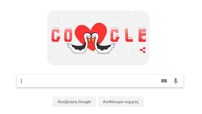 Η Google αφιερώνει το σημερινό της Doodle στην ημέρα του Αγίου Βαλεντίνου και στους ερωτευμένους αυτού του πλανήτη.