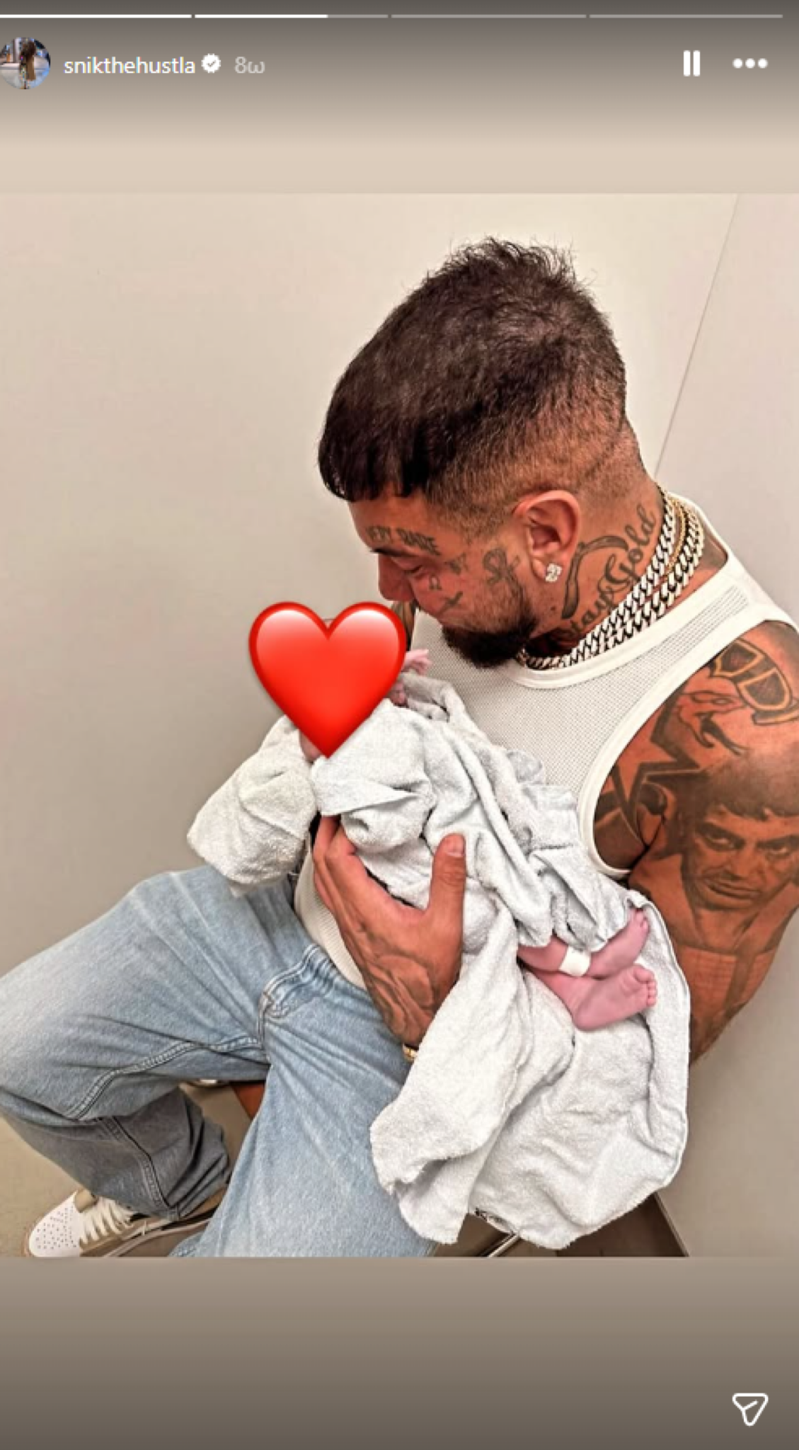 Η ευχάριστη είδηση ανακοινώθηκε την Πέμπτη 2 Απριλίου, μέσα από ανάρτηση που έκανε ο τράπερ στον προσωπικό του λογαριασμό στο Instagram. Πιο συγκεκριμένα, ο Snik δημοσίευσε ένα story στο οποίο φαίνεται να έχει αγκαλιά το νεογέννητο παιδί του.