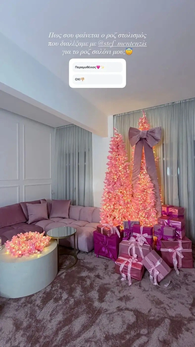 Η Influencer, πάντα με τη βοήθεια του Στέφανου, έκανε έναν άκρως εντυπωσιακό στολισμό, βάζοντας λευκά φωτάκια και μεγάλες κορδέλες στα ροζ δέντρα της, τα οποία συνόδευσε με κουτιά δώρων. Όπως ήταν επόμενο, ο μικρός Πάρης τρελάθηκε με τον ροζ χριστουγεννιάτικο στολισμό του σπιτιού του!