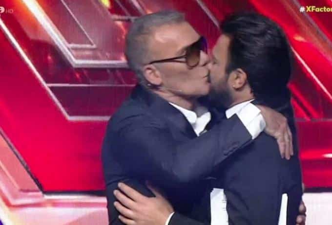 Τότε ο Στέλιος Ρόκκος, κατά την είσοδο του στη σκηνή του X Factor, έγινε…διαχυτικός και φίλησε τον Ανδρέα Γεωργίου στο στόμα.