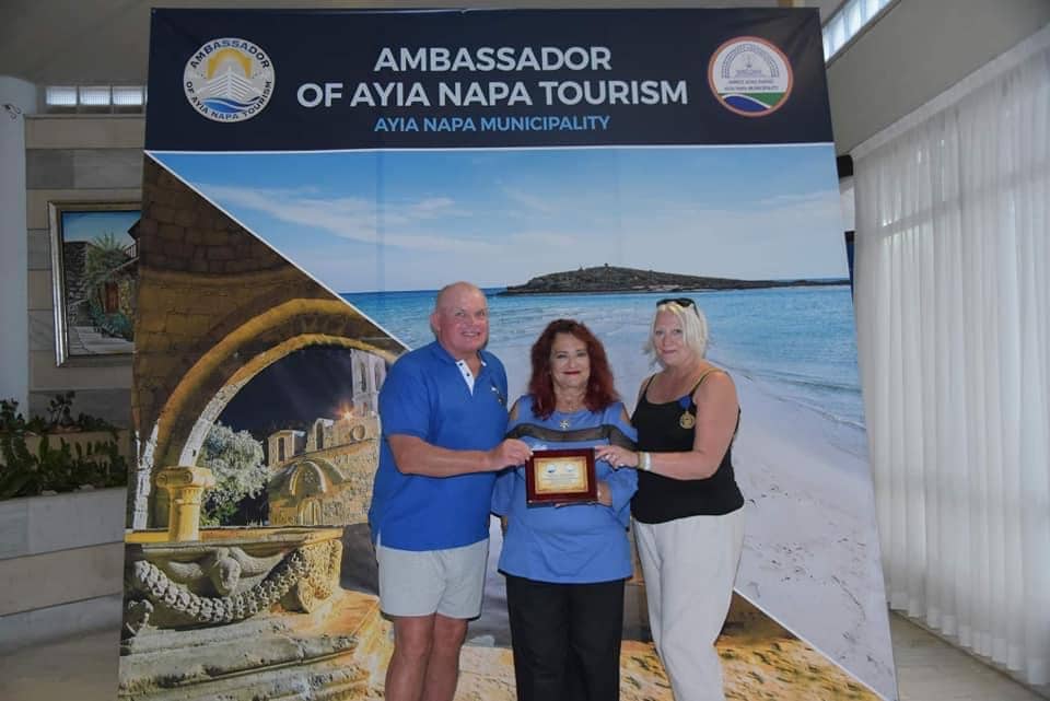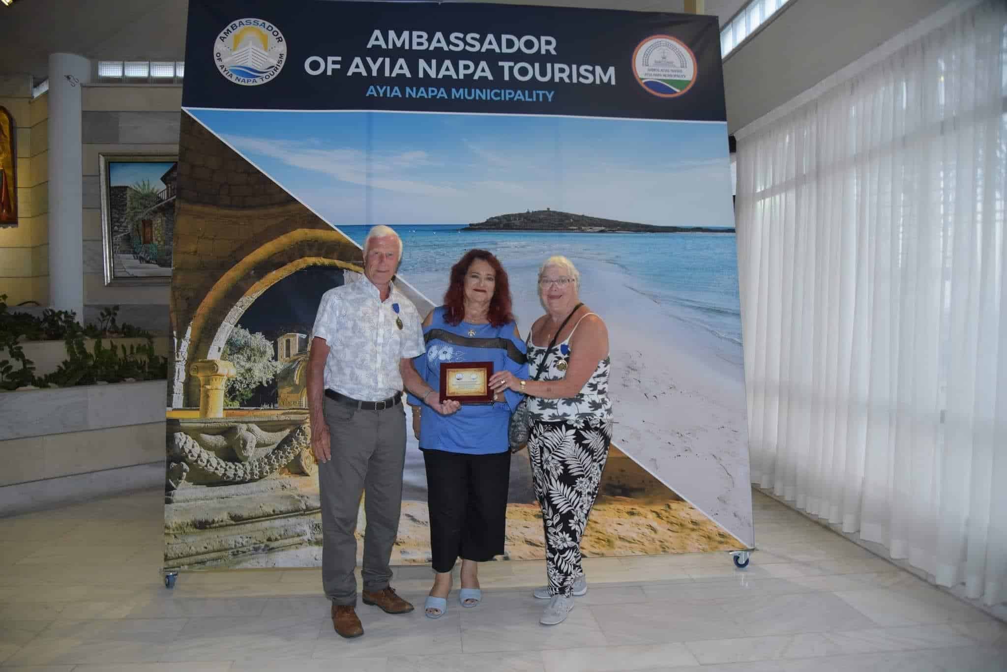 Ακόμη μία οικογένεια Βρετανών προστέθηκε στον μακρύ κατάλογο των τουριστών που τιμήθηκαν με αναμνηστική πλακέτα και με το έμβλημα του «Πρέσβη Τουρισμού» Αγίας Νάπας.