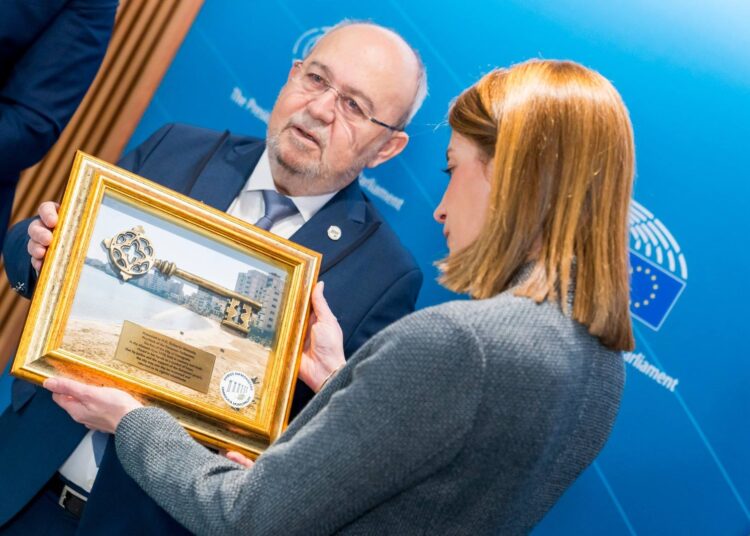 Η αντιπροσωπεία, με επικεφαλής τον Δήμαρχο Αμμοχώστου, είχε την ιδιαίτερη τιμή να συναντηθεί στις 24 Φεβρουαρίου με την Πρόεδρο του Ευρωπαϊκού Κοινοβουλίου, κα. Roberta Metsola. Στην Πρόεδρο παραδόθηκε το κλειδί της πόλης ως σύμβολο ελπίδας, εμπιστοσύνης και της διαρκούς προσπάθειας για δικαίωση της Αμμοχώστου.