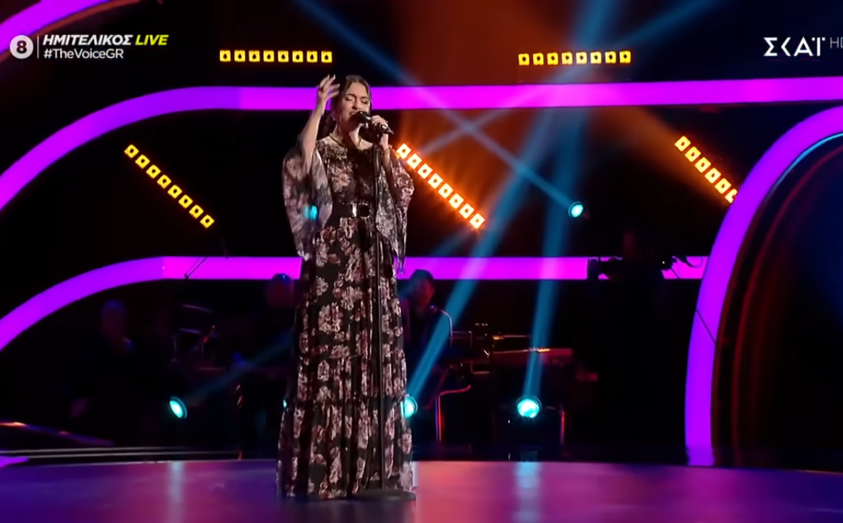 Η νεαρή τραγουδίστρια ανέβηκε στη σκηνή και ερμήνευσε το τραγούδι «Αυτή η Νύχτα Μένει», καταφέρνοντας να συγκινήσει τόσο τους coaches όσο και το τηλεοπτικό κοινό.