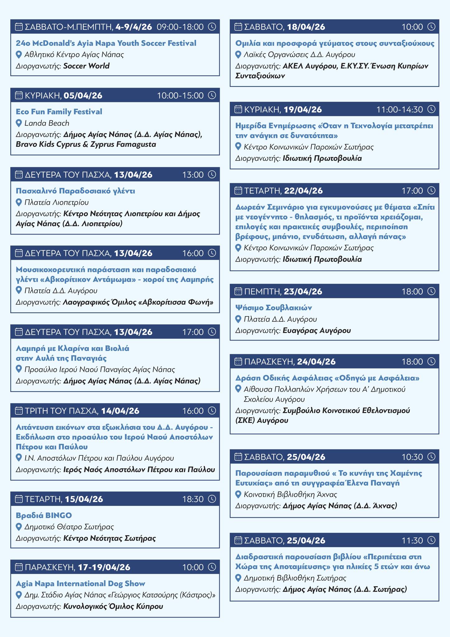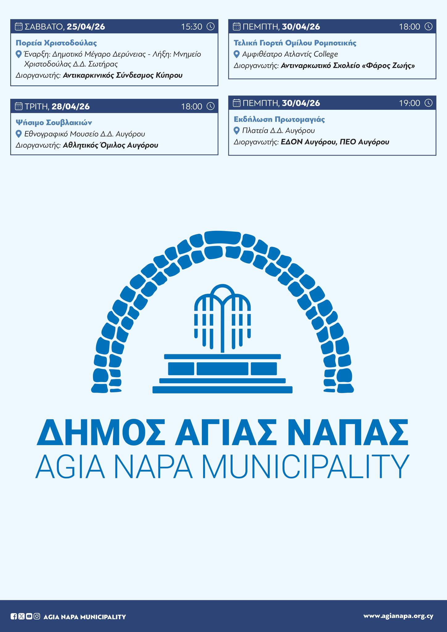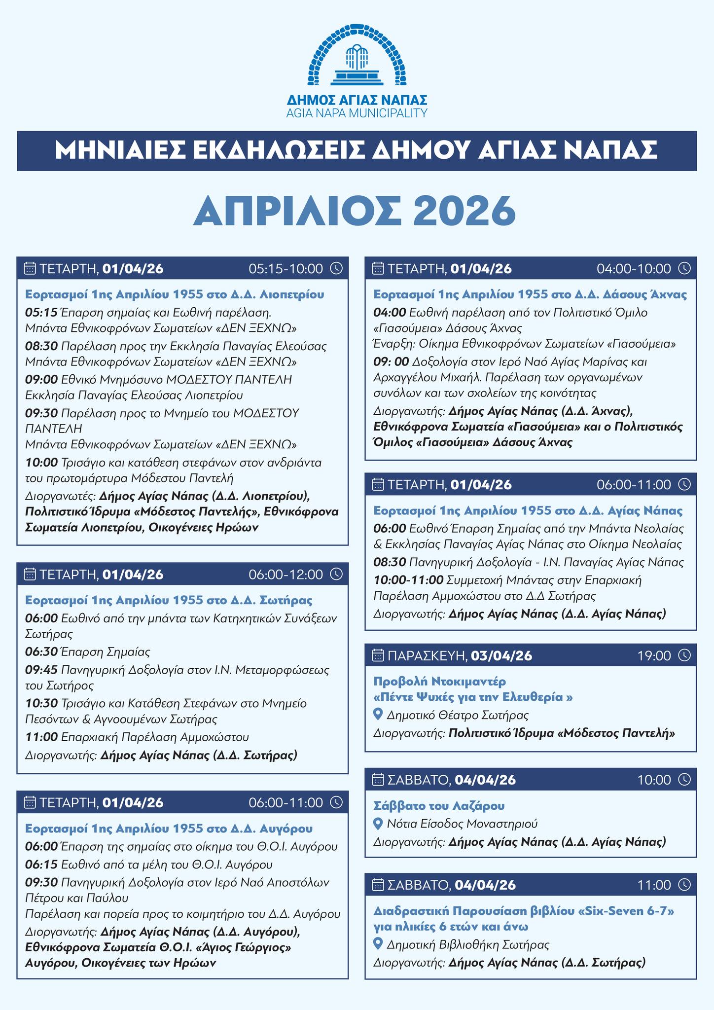 Αυτές είναι οι Εκδηλώσεις του Δήμου Αγίας Νάπας τον Απρίλιο