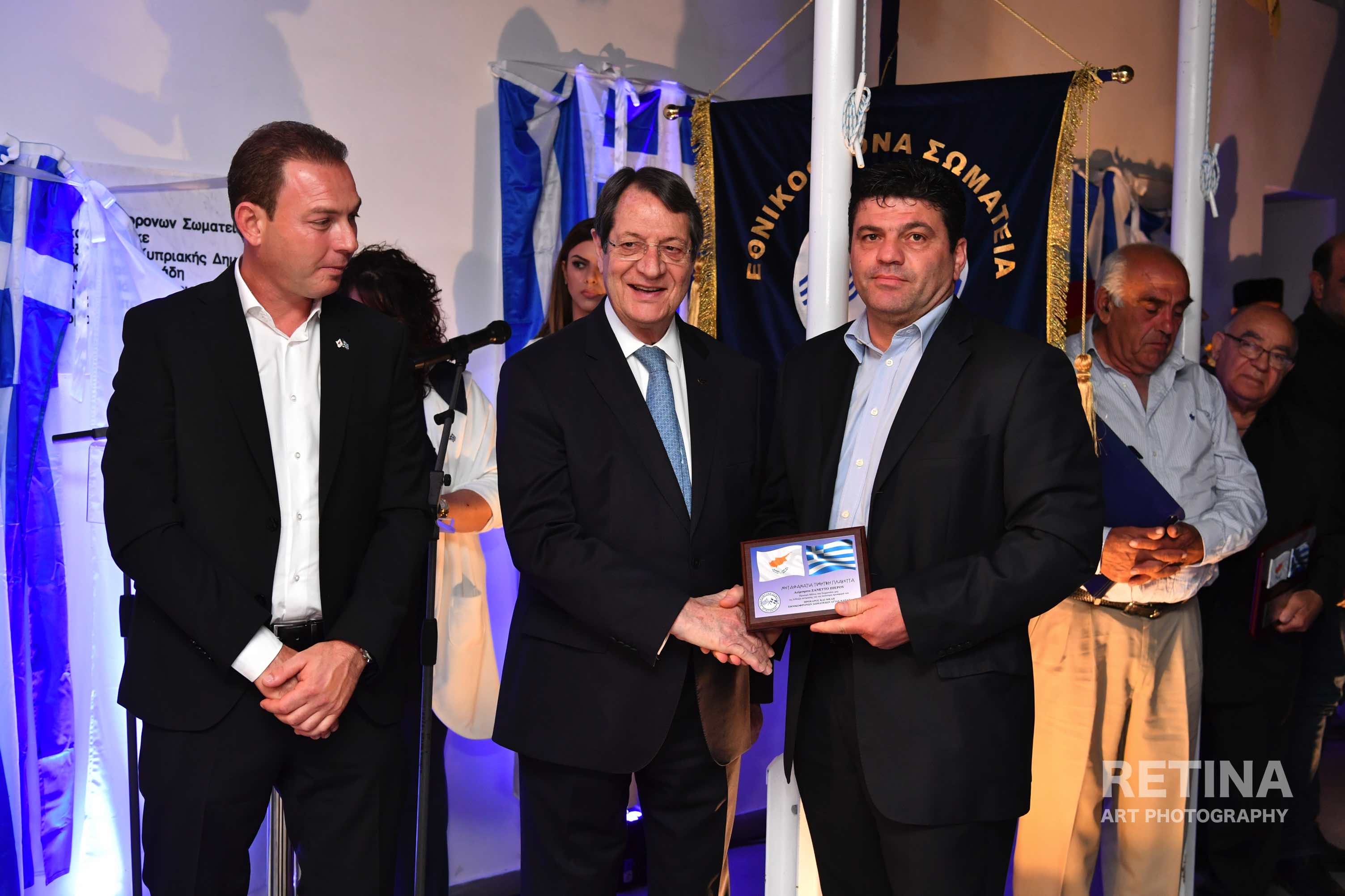 Ο Πρόεδρος Αναστασιάδης αναφερόμενος στα Εθνικόφρονα Σωματεία, είπε ότι από της ιδρύσεως τους τη δεκαετία του 1950, τα Σωματεία έθεσαν ως στόχο, εμφυσώντας το θρησκευτικό και εθνικό αίσθημα στους κατοίκους της Αγίας Νάπας κατά τις δύσκολες συνθήκες που επικρατούσαν στην Κύπρο την εποχή εκείνη, τη στήριξη του Απελευθερωτικού Αγώνα της ΕΟΚΑ σε πολιτικό και κοινωνικό επίπεδο.