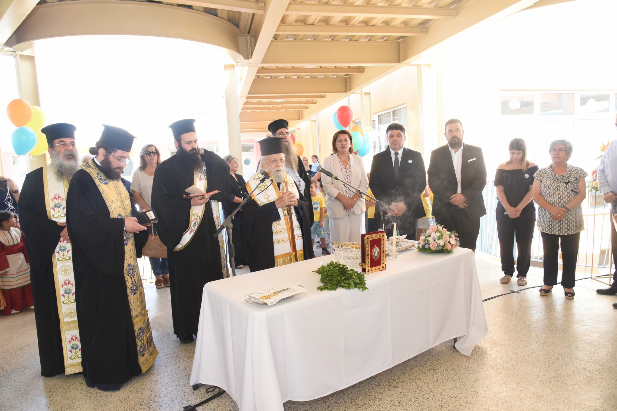 Η Διευθύντρια του Νηπιαγωγείου, κα Εύη Ισαάκ, χαρακτήρισε τη σημερινή μέρα ιστορική και ορόσημο για το σχολείο, την κοινότητα και την κοινωνία. Τόνισε τον καθοριστικό ρόλο της προσχολικής αγωγής στην ανάπτυξη των παιδιών και υπογράμμισε ότι το νέο σύγχρονο κτήριο ανταποκρίνεται στις ανάγκες τους, προσφέροντας ασφαλές και παιδαγωγικά πλούσιο περιβάλλον.