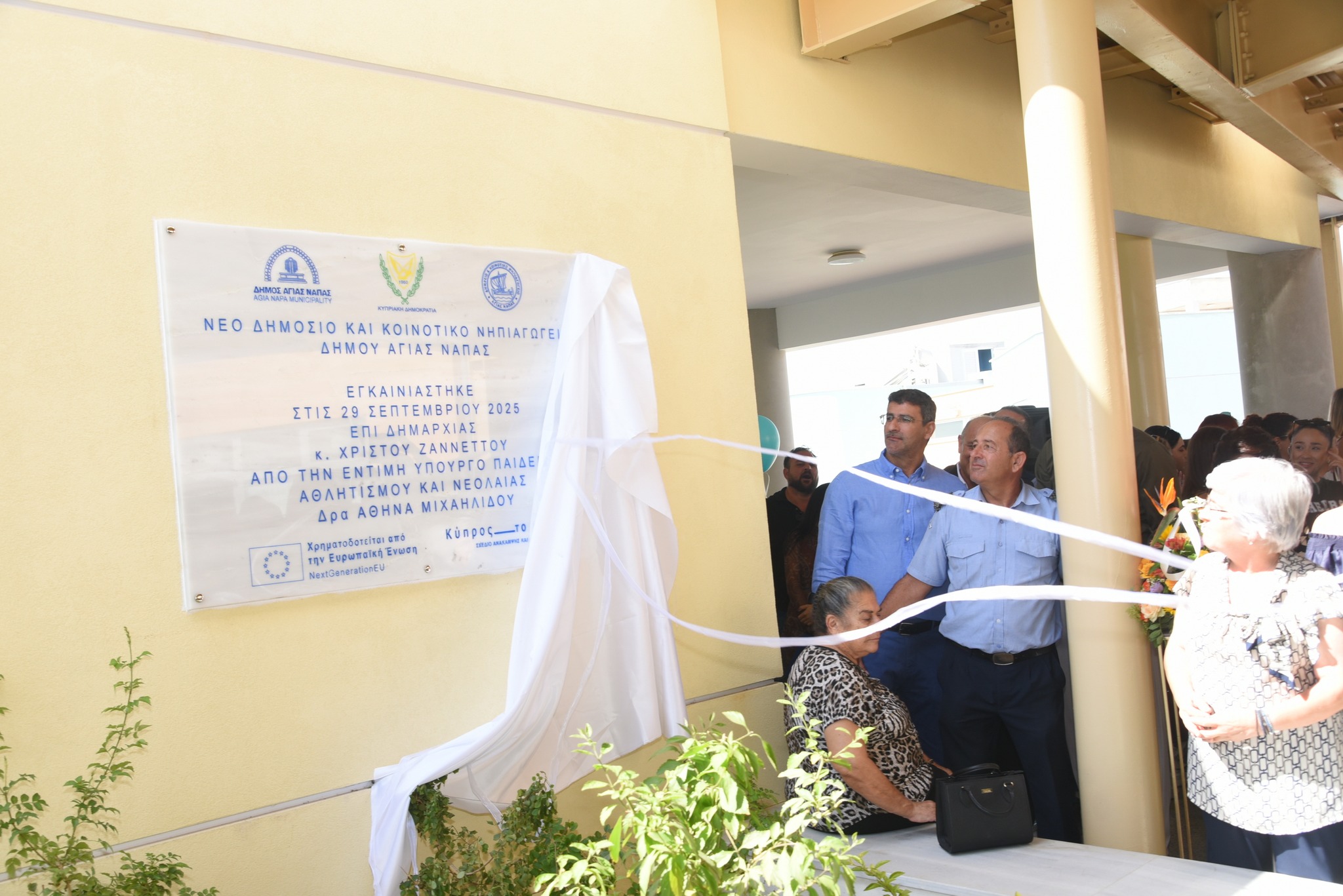 Τελέστηκαν την, Δευτέρα 29 Σεπτεμβρίου 2025, τα εγκαίνια του νέου Δημόσιου / Κοινοτικού Νηπιαγωγείου και Βρεφονηπιακού Σταθμού Αγίας Νάπας, ενός έργου-κόσμημα για την πόλη και την ευρύτερη περιοχή, που αναβαθμίζει την προσχολική εκπαίδευση και προσφέρει ένα ασφαλές, σύγχρονο και παιδαγωγικά ολοκληρωμένο περιβάλλον για τα παιδιά.