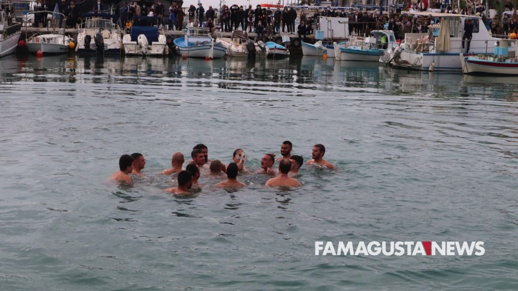 Μετά το πέρας της Θείας Λειτουργίας έγινε ο καθαγιασμός των υδάτων και η βάπτιση του Τιμίου Σταυρού στο λιμανάκι Αγίας Νάπας.