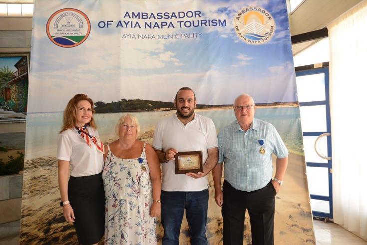 Ζεύγος από τη Βρετανία τιμήθηκε σήμερα με το βραβείο του «Πρέσβη του Τουρισμού Αγίας Νάπας» αφού συμπλήρωσαν 50 επισκέψεις στη περιοχή.
