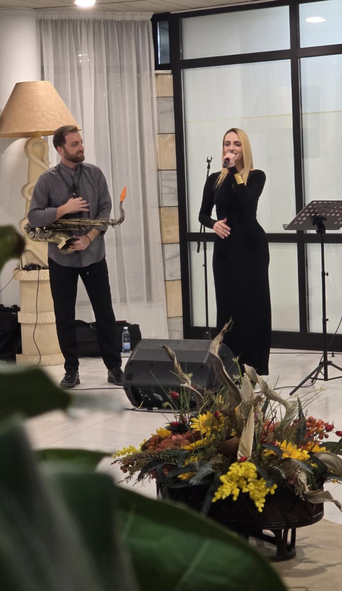 Το κοινό που παρευρέθηκε στο χώρο υποδοχής του Δημοτικού Μεγάρου Αγίας Νάπας απόλαυσε μια ξεχωριστή μουσική βραδιά με τον Δημήτρη Πασχάλη στο σαξόφωνο και την Ελίνα Πασχάλη στο τραγούδι, οι οποίοι παρουσίασαν ένα πλούσιο ρεπερτόριο ελληνικής και ξένης jazz, δημιουργώντας μια ζεστή και καλλιτεχνικά υψηλού επιπέδου ατμόσφαιρα.