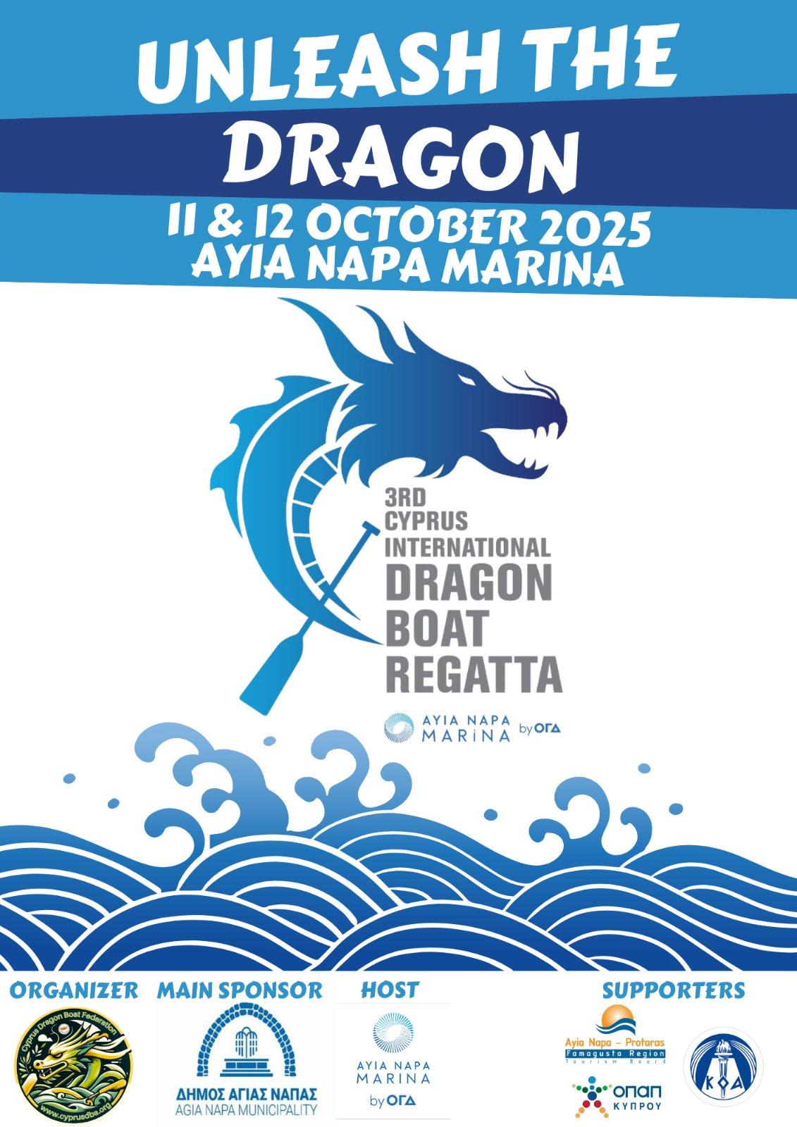 Η καρδιά του διεθνούς αθλητισμού θα χτυπά αυτό το Σαββατοκύριακο στην Αγία Νάπα, καθώς το Σάββατο 11 και την Κυριακή 12 Οκτωβρίου 2025, θα πραγματοποιηθεί στη Μαρίνα Αγίας Νάπας η 3η Cyprus International Dragon Boat Regatta, μία διοργάνωση υψηλού επιπέδου που συγκεντρώνει ομάδες από την Κύπρο και το εξωτερικό.
