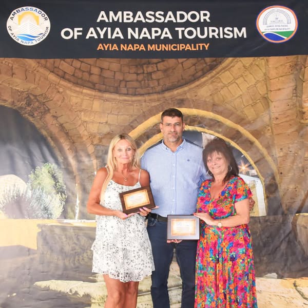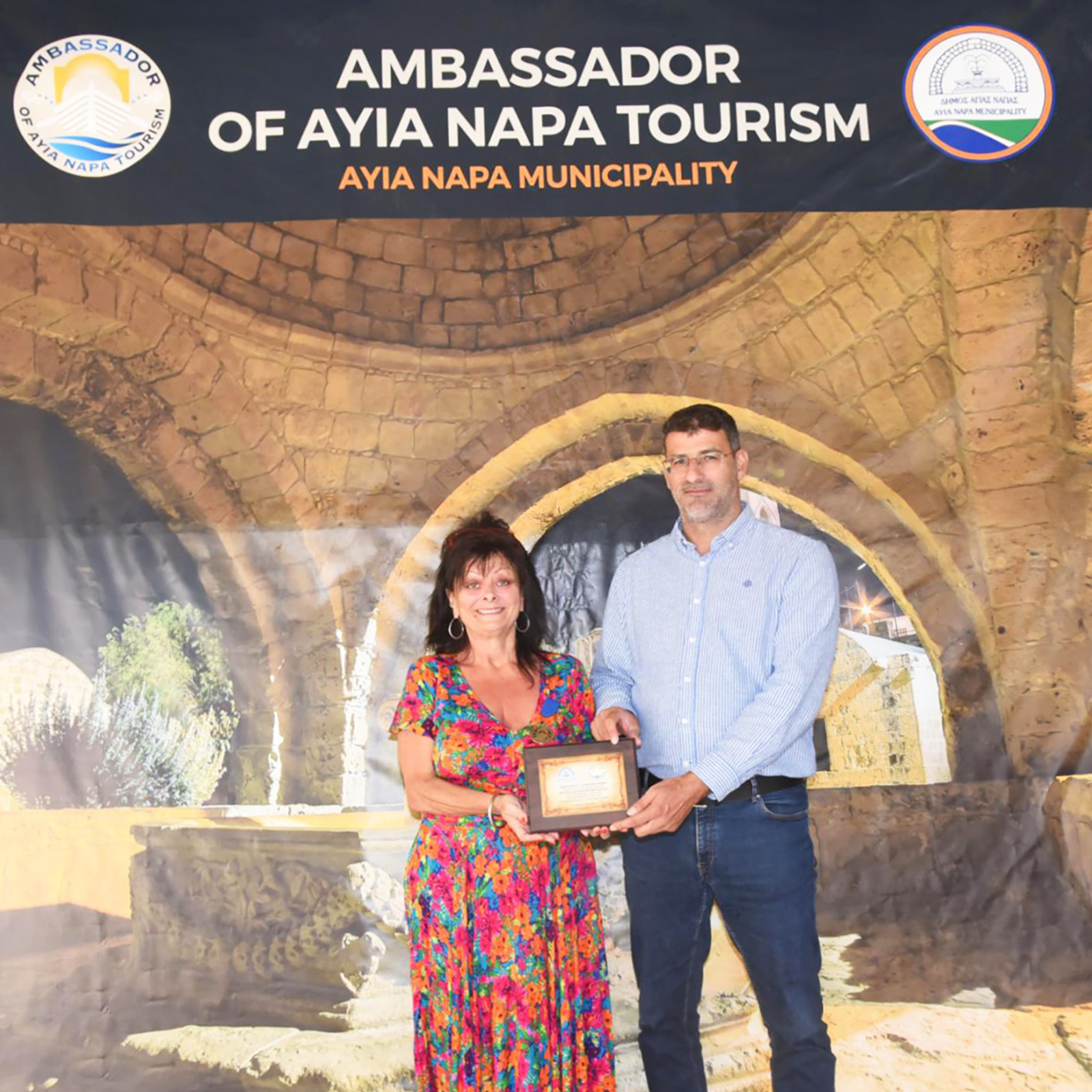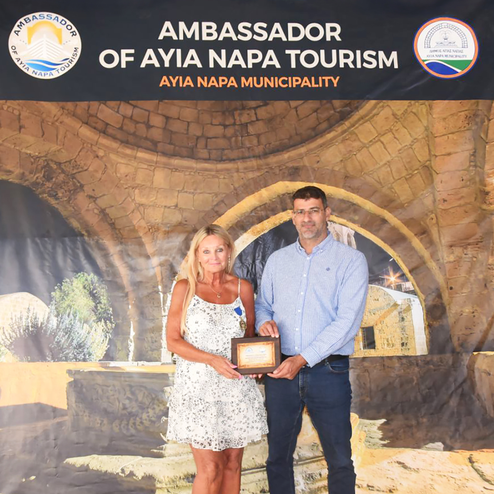 On behalf of Mayor Mr Christos Zannettou, the honorary distinction was presented by the Agia Napa Municipal Secretary Mr Fotos Kikillos.