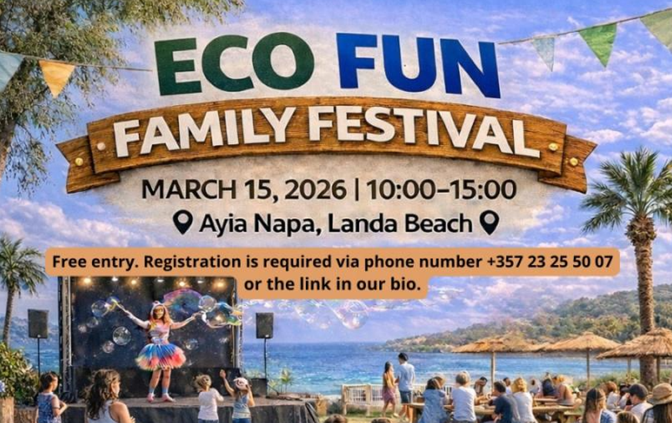 Agia Napa is preparing to host the Eco Fun Family Festival, a vibrant family-oriented event dedicated to nature, participation and environmental awareness. The festival will take place on Sunday, March 15, 2026, from 10:00 to 15:00, at Landa Beach in Agia Napa, offering a complete seaside experience filled with meaningful activities and entertainment.