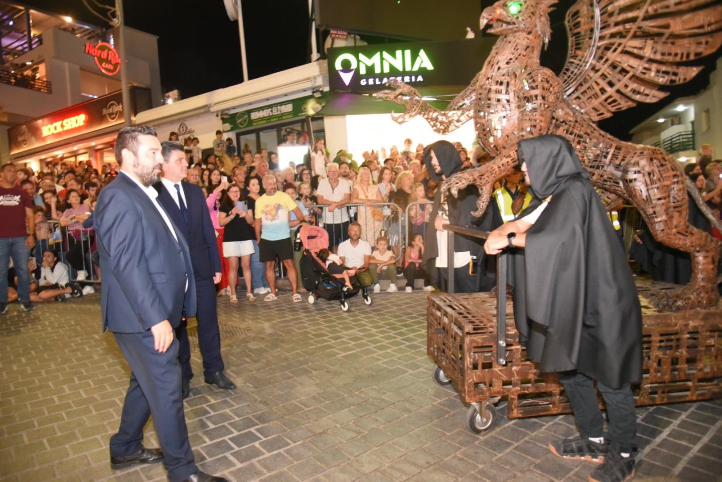 Χιλιάδες ντόπιοι και ξένοι επισκέπτες κατέκλυσαν το Σάββατο (11 Οκτωβρίου) βράδυ τη Λεωφόρο Μακαρίου και την Κεντρική Πλατεία «Γιώργος Σεφέρης», απολαμβάνοντας μοναδικές στιγμές κατά την τέταρτη ημέρα του 20ού Μεσαιωνικού Φεστιβάλ Αγίας Νάπας, η οποία κορυφώθηκε με τη φαντασμαγορική Μεσαιωνική Παρέλαση και τη μαγευτική συναυλία του διεθνούς φήμης τενόρου Μάριου Φραγκούλη.