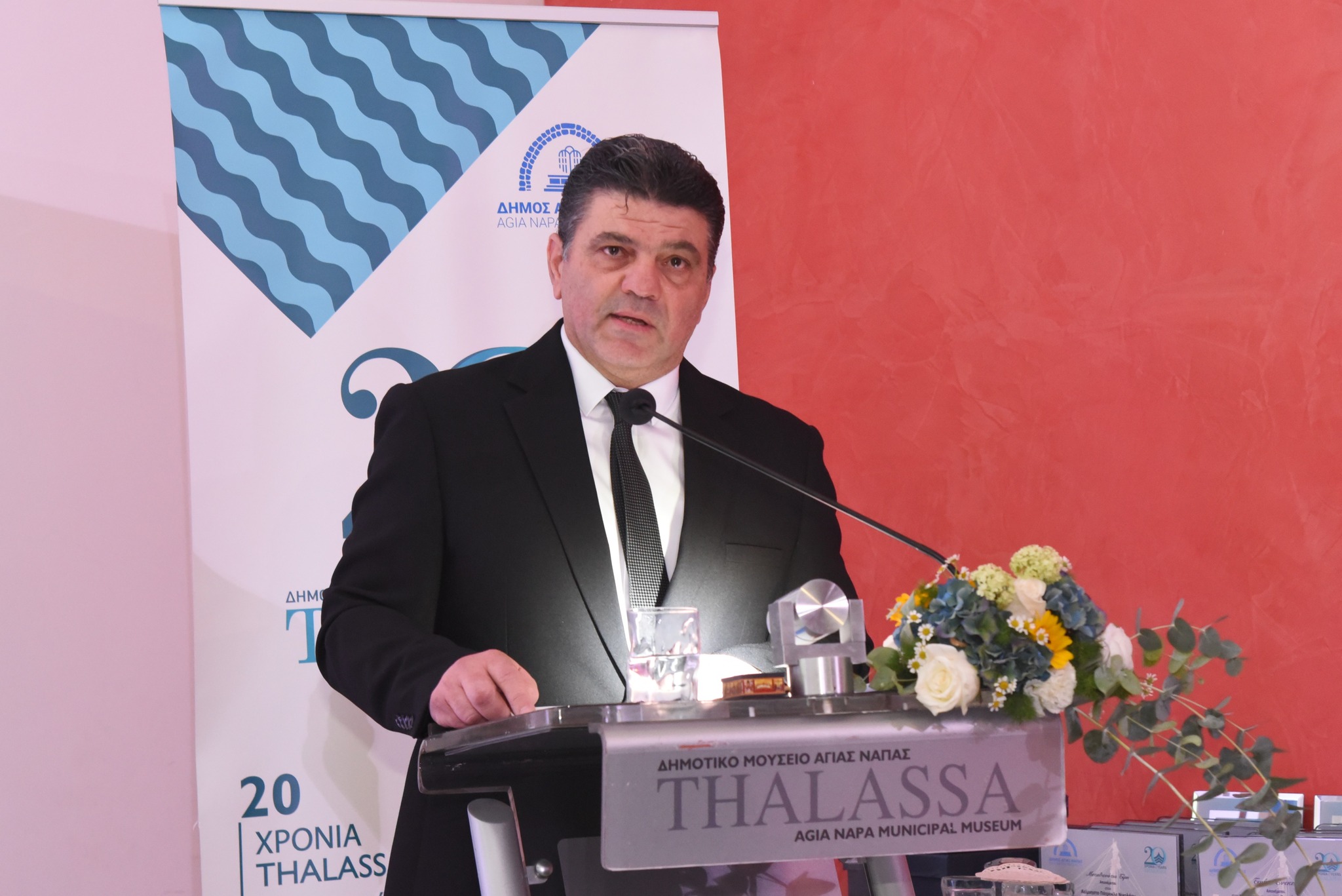 Στο δικό του χαιρετισμό, ο Δήμαρχος Αγίας Νάπας, κ. Χρίστος Ζαννέττου, τόνισε ότι τα είκοσι χρόνια λειτουργίας του Μουσείου σηματοδοτούν έρευνα, πολιτισμό, μνήμη και δημιουργία, καθιστώντας την Αγία Νάπα έναν διεθνώς αναγνωρισμένο πόλο πολιτισμού. Υπογράμμισε ότι το Μουσείο δεν λειτουργεί μόνο ως χώρος έκθεσης, αλλά ως εργαστήριο πολιτιστικής έρευνας, κέντρο τουριστικής και εκπαιδευτικής κατάρτισης, πλατφόρμα μουσειοπαιδαγωγίας και χώρος κοινωνικού διαλόγου για την πολιτιστική και θαλάσσια κληρονομιά της Κύπρου.