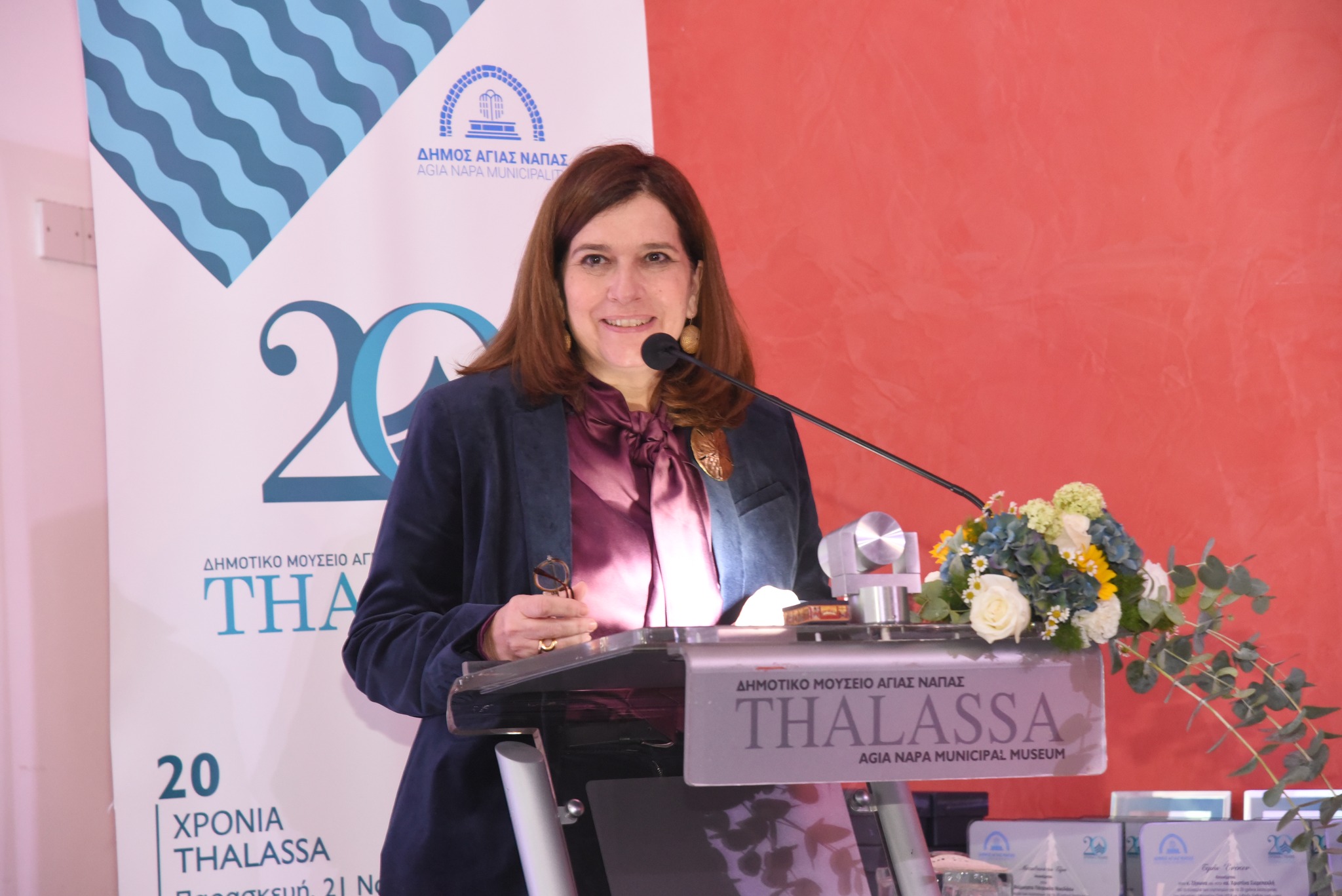Η Διευθύντρια του Μουσείου, κα. Κορνηλία Κυριάκου, υπογράμμισε τη σημασία των 20 χρόνων λειτουργίας, τον εκπαιδευτικό και κοινωνικό ρόλο του Μουσείου, καθώς και τις νέες υποδομές, τονίζοντας τη δέσμευση του THALASSA να συνεχίσει να εμπνέει και να υπηρετεί τον πολιτισμό.