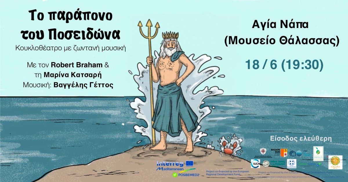 “Το παράπονο του Ποσειδώνα”. Κουκλοθέατρο με ζωντανή μουσική με τους Roberto Braham, Μαρίνα Κατσαρή, Βαγγέλη Γέττο.