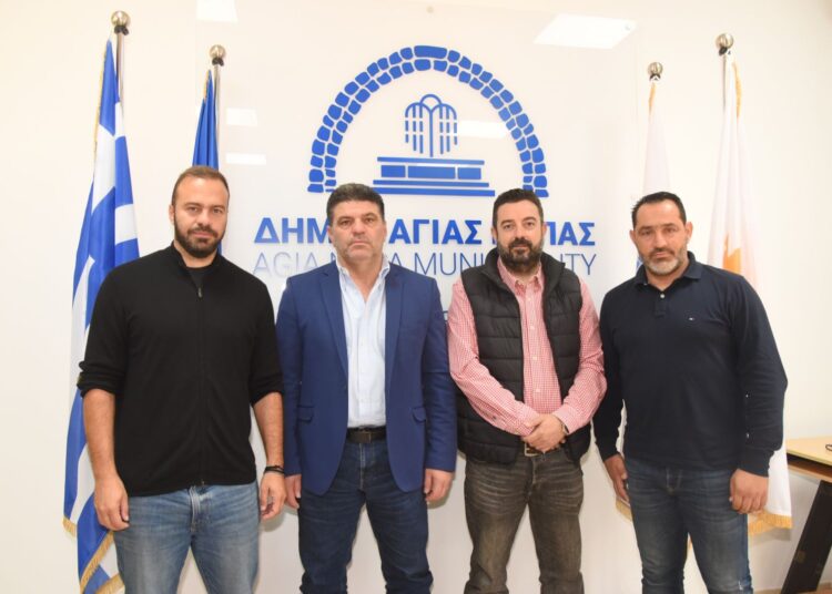 Η συνάντηση του Δημάρχου κ. Χρίστου Ζαννέττου με τον Διευθυντή της διοργανώτριας εταιρείας του τουρνουάYellow Fields, κ. Νίκο Λεμονή και τον Διευθυντή του Αγία Νάπα Soccer School κ. Δήμο Γούμενου, πραγματοποιήθηκε πρόσφατα στο γραφείο του Δημάρχου, παρουσία του Αντιδημάρχου του Δημοτικού Διαμερίσματος Αγίας Νάπας κ. Αντώνη Χρίστου.
