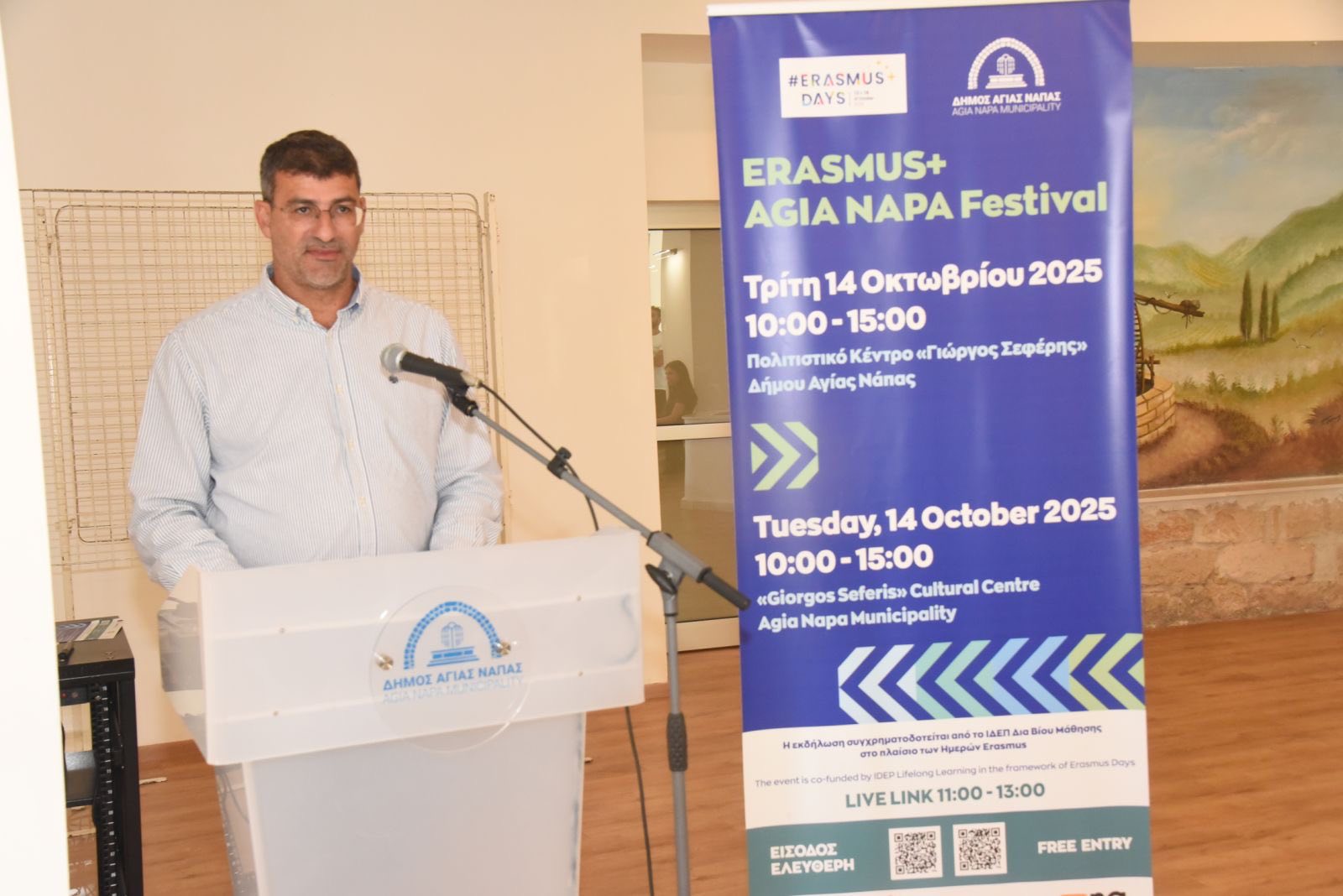 Με μεγάλη επιτυχία και έντονη συμμετοχή της εκπαιδευτικής και τοπικής κοινότητας πραγματοποιήθηκε την Τρίτη, 14 Οκτωβρίου 2025, στο Πολιτιστικό Κέντρο «Γιώργος Σεφέρης», το ERASMUS+ AGIA NAPA Festival, μια γιορτή γνώσης, καινοτομίας και ευρωπαϊκής συνεργασίας που έχει πλέον καθιερωθεί ως θεσμός στην Αγία Νάπα.