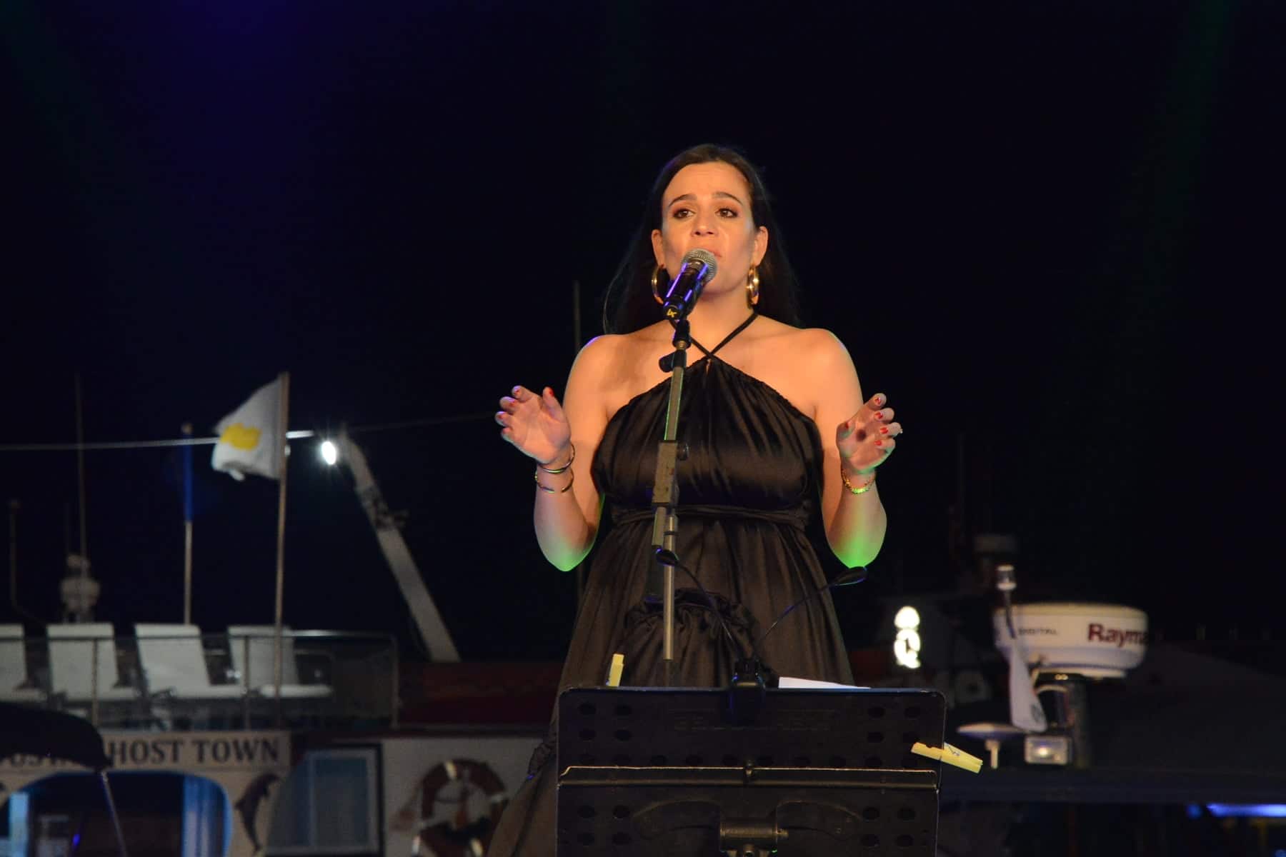 Με Τζαζ διάθεση όπως ακριβώς αρμόζει στον ειδυλλιακό χώρο του γραφικού λιμανιού η νεαρή ερμηνεύτρια Μαριάννα Χατζηχρίστου από την Αγία Νάπα παρουσίασε μαζί με τους συνεργάτες της μουσικούς, Αλέξανδρο Αλεξάνδρου (ηλεκτρικό Μπάσο) και Ιωάννη Καρσερά (Κοντραμπάσο), ένα πολύ ωραίο και προσεγμένο πρόγραμμα με γνωστά, αγαπημένα τραγούδια που έγραψαν για τον Ελληνικό Κινηματογράφο κι όχι μόνο μεγάλοι ΄Ελληνες Μουσικοσυνθέτες χαρίζοντας στους θαμώνες μία μαγική και ονειρική βραδιά.