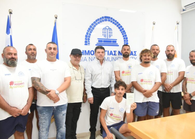 Με αφορμή τη διάκριση, ο Δήμαρχος Αγίας Νάπας κ. Χρίστος Ζαννέττου υποδέχθηκε πρόσφατα στο γραφείο του το προσωπικό του Τμήματος Παραλιών που εργάζεται στην παραλία Λάντα, και έχει την ευθύνη για την είσπραξη και την καθαριότητα της.