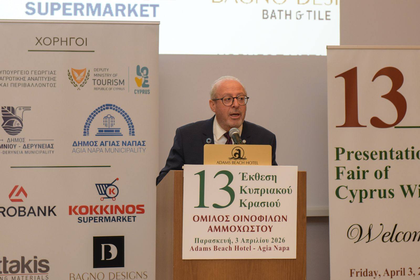Επίσης, συνεχάρη θερμά τον Όμιλο Οινοφίλων Αμμοχώστου για την άρτια διοργάνωση της έκθεσης, καθώς και όλους τους συμμετέχοντες για το υψηλό επίπεδο παρουσίασης και φιλοξενίας.