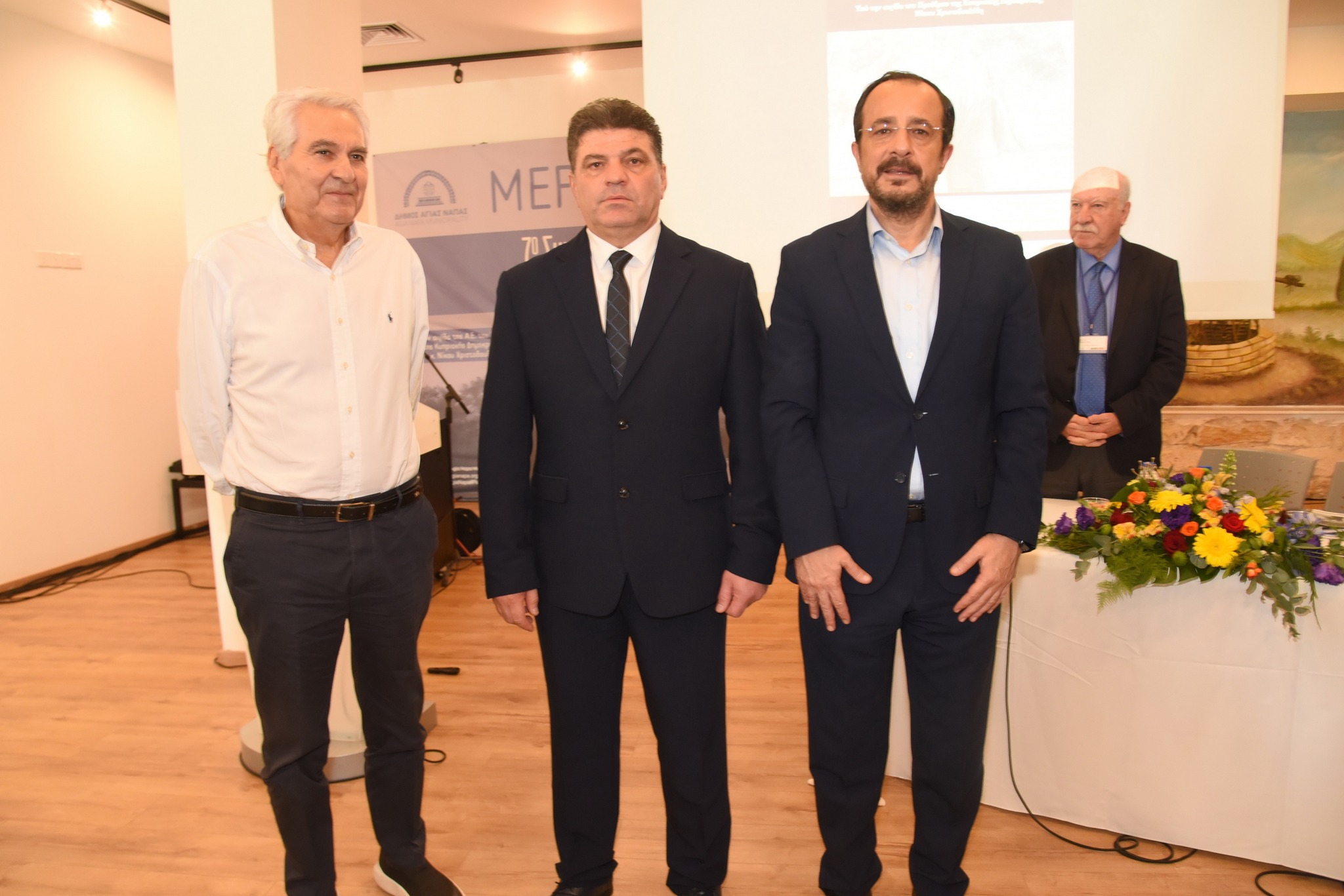 Τον Πρόεδρο της Δημοκρατίας υποδέχθηκαν στον χώρο του Πολιτιστικού Κέντρου ο Δήμαρχος Αγίας Νάπας και Πρόεδρος της Οργανωτικής Επιτροπής του Συμποσίου, κ. Χρίστος Ζαννέττου, οι Αντιδήμαρχοι Άχνας, Σωτήρας, Λιοπετρίου, Αυγόρου και Αγίας Νάπας, κ.κ. Νίκος Βάσιλας, Αντώνης Κουμής, Μάρκος Κουμής, Παναγής Μιχαηλάς και Αντώνης Χρίστου, τα μέλη της Οργανωτικής Επιτροπής του Συμποσίου, καθώς οι επικεφαλής της Επιστημονικής Επιτροπής, κ.κ. Γιώργος Γεωργής και Παντελής Βουτουρής, και ο Πρόεδρος του Συνδέσμου «΄Αρωμα» Αγίας Νάπας – Φίλοι Πάρκου Γλυπτικής, Μέλος της Οργανωτικής Επιτροπής του Συμποσίου κ. Χριστάκης Πίττας.