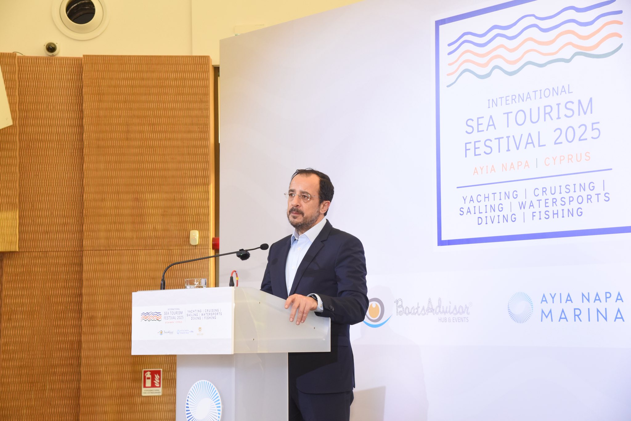 Στο χαιρετισμό του, ο Πρόεδρος της Δημοκρατίας τόνισε τη σημασία της διοργάνωσης, η οποία όπως είπε πραγματοποιείται για πρώτη φορά στη Κύπρο και αποτελεί μία από τις σημαντικότερες διεθνείς εκδηλώσεις στον τομέα του ναυτικού τουρισμού.