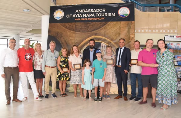 The Agia Napa Municipality honoured on Monday, October 20th 2025, at the Agia Napa Municipal Quarter, eight loyal friends and regular visitors of the town by proclaiming them as «Tourism Ambassadors». The ceremony is part of the Municipality’s long-standing initiative to recognize individuals who consistently demonstrate their love and devotion to the city.