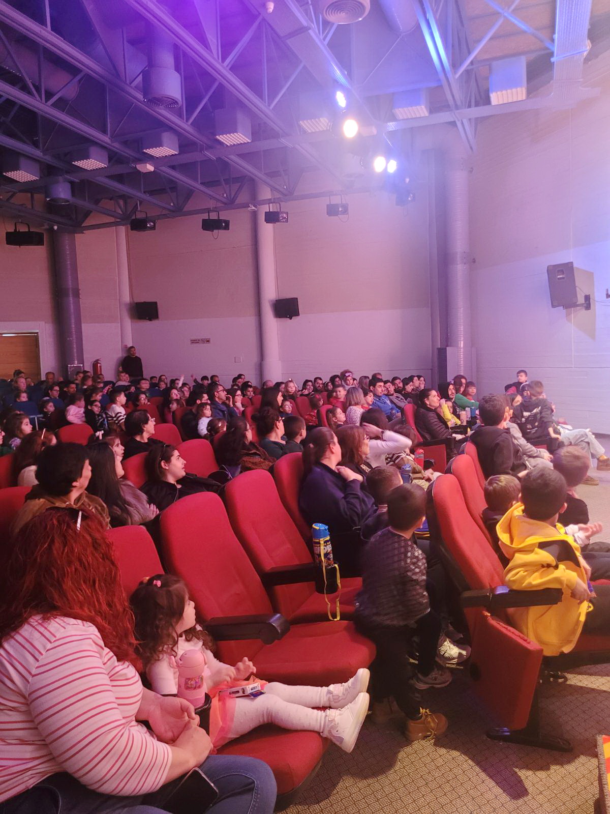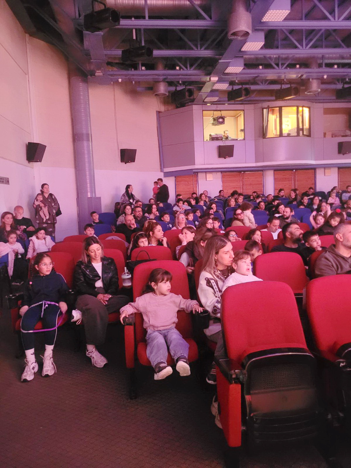 Η αίθουσα ήταν κατάμεστη, δημιουργώντας μια ζεστή και γιορτινή ατμόσφαιρα, γεμάτη χαμόγελα, ζωντάνια και παιδικές φωνές.