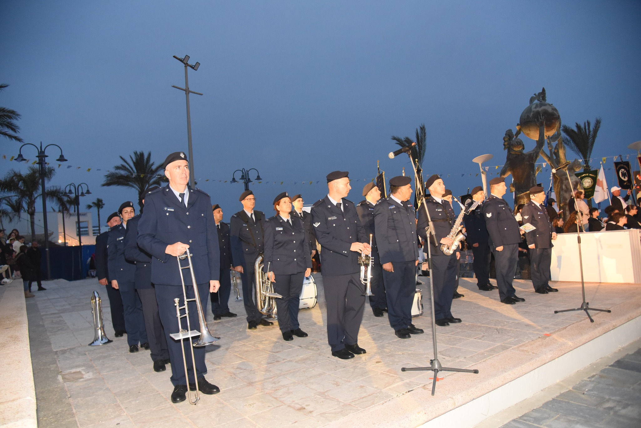 Ακολούθησαν οι τελετουργικές τελετές με τη μεταφορά της σημαίας της Επανάστασης από την Ομάδα του Συνδέσμου Βατραχανθρώπων Κύπρου, την αφή της φλόγας στο Μνημείο των Ηρώων και την ανάρτηση σημαιών, ενώ ξεχωριστή στιγμή αποτέλεσαν τα αποκαλυπτήρια του μνημείου του οπλαρχηγού Χατζημιχάλη Νταλιάνη, τιμώντας τη συμβολή του στην ιστορική μάχη και στον Αγώνα της Ελευθερίας.