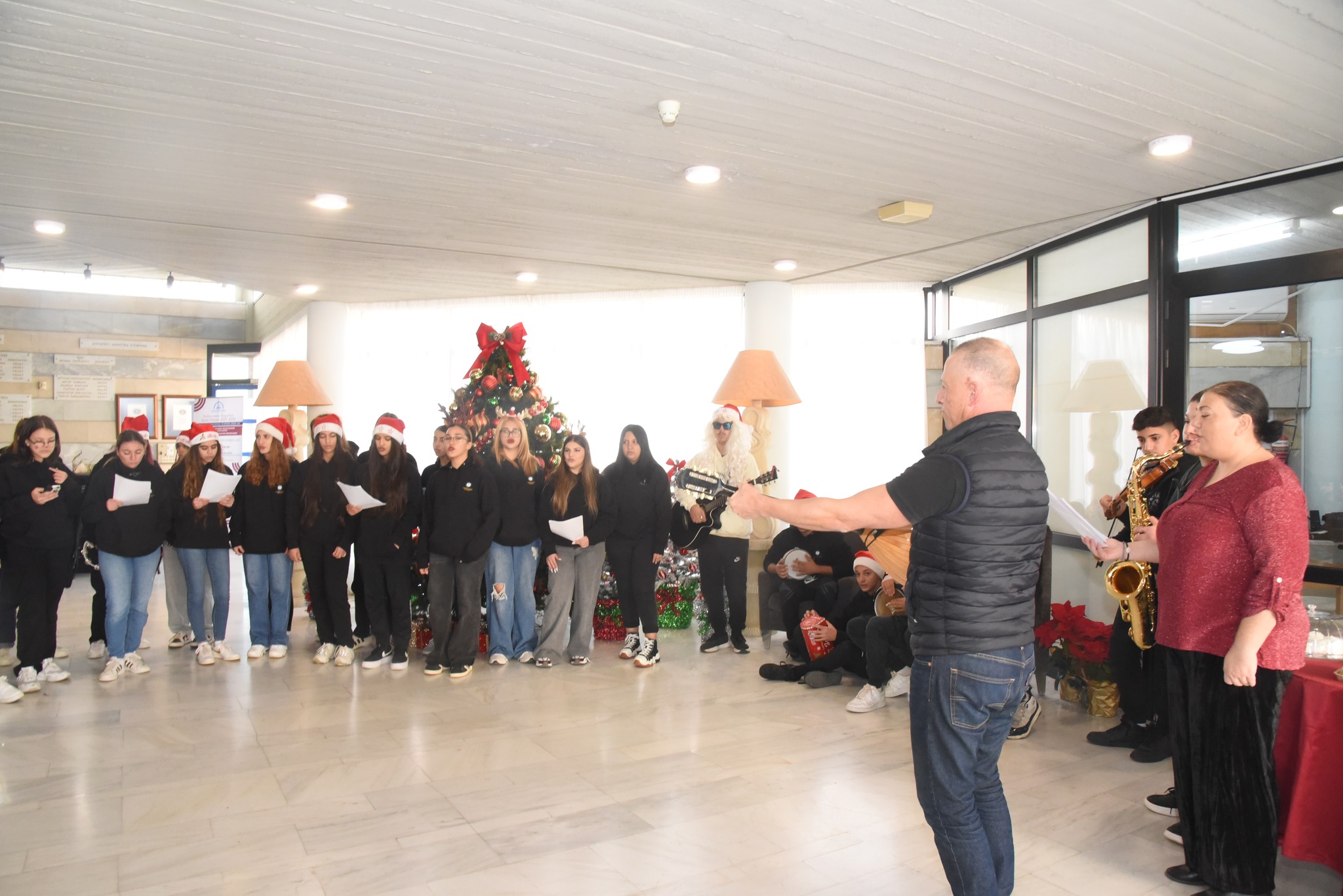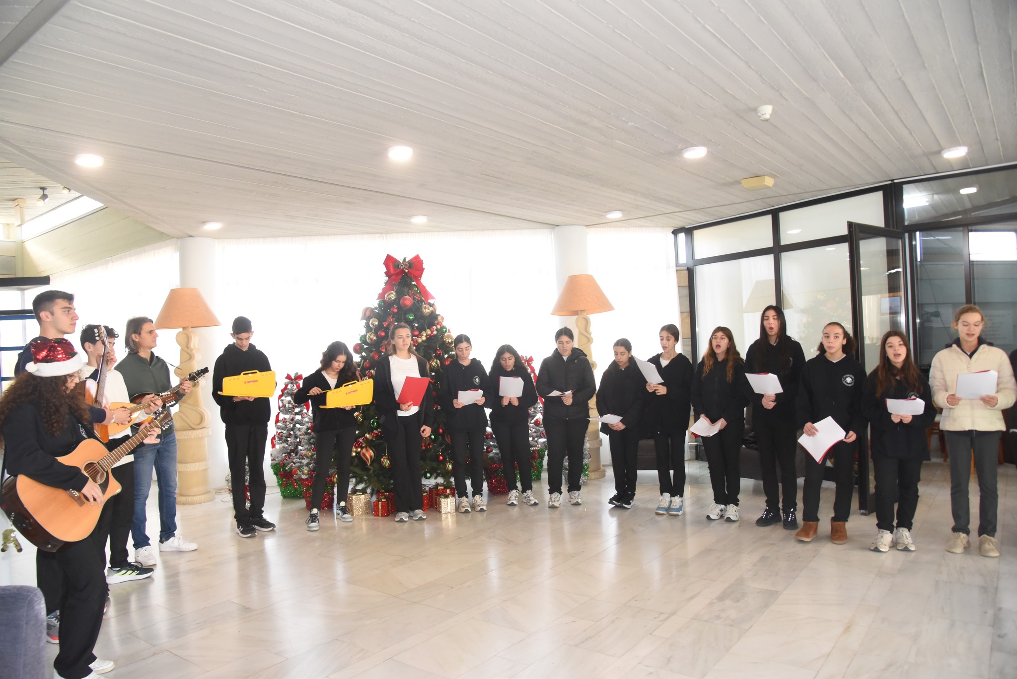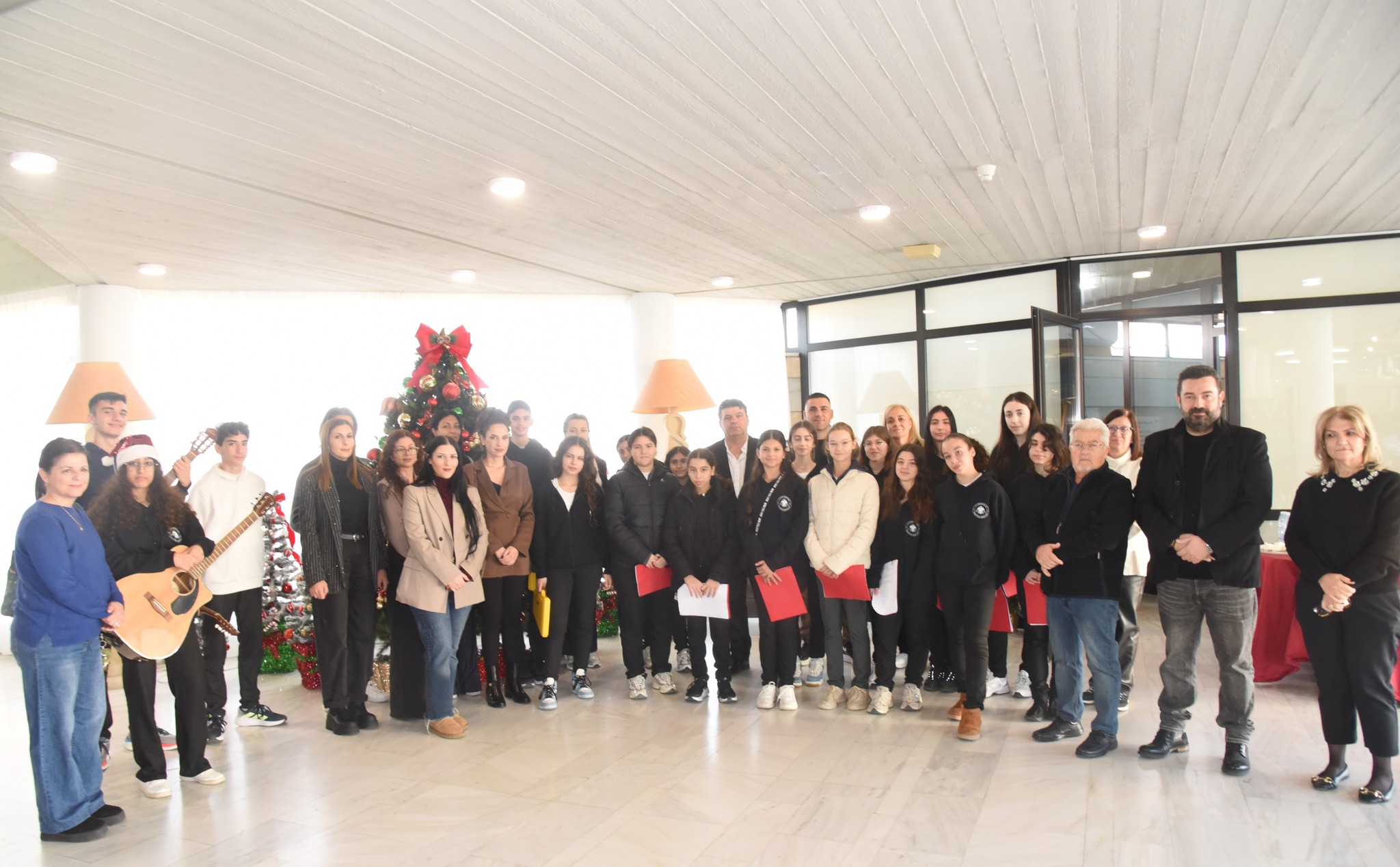 Το Δημοτικό Μέγαρο Αγίας Νάπας επισκέφθηκαν την, Παρασκευή 19 Δεκεμβρίου, μαθητές της Τεχνικής Σχολής Αυγόρου, της Τεχνικής Σχολής Παραλιμνίου και του Γυμνασίου Παραλιμνίου, καθώς και το Μουσικό Σύνολο της 7ης Μηχανοκίνητης Ταξιαρχίας Πεζικού.