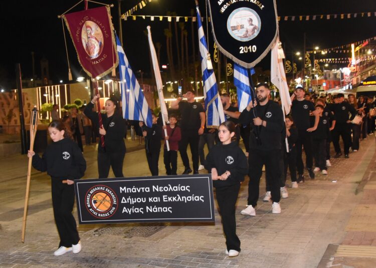 Αμέσως μετά θα αρχίσει η λαμπαδηφορία από τα Οργανωμένα Σύνολα κατά μήκος της λεωφόρου Μακαρίου μέχρι τον κυκλικό κόμβο του Λιμανιού με κατάληξη τις προτομές των ηρώων. Στην λαμπαδηφορία θα συμμετέχουν η Μπάντα Νεολαίας και Εκκλησίας Παναγίας Αγίας Νάπας, η μαθητιώσα νεολαία και εκπρόσωποι οργανωμένων συνόλων του Δ.Δ. Αγίας Νάπας με τα λάβαρα και τις σημαίες τους.