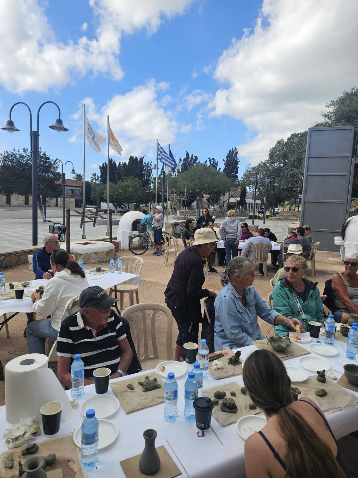 Ο γνωστός αγγειοπλάστης κ. Χρίστος Ασκώτης παρουσίασε ζωντανά στο κοινό την τέχνη της αγγειοπλαστικής, αποκαλύπτοντας τα μυστικά και τις τεχνικές μιας παραδοσιακής δημιουργίας που διατηρείται ζωντανή μέσα στον χρόνο. Οι παρευρισκόμενοι είχαν την ευκαιρία να παρακολουθήσουν από κοντά όλα τα στάδια της διαδικασίας, να θέσουν ερωτήσεις και να γνωρίσουν καλύτερα μια σημαντική πτυχή της λαϊκής μας παράδοσης.
