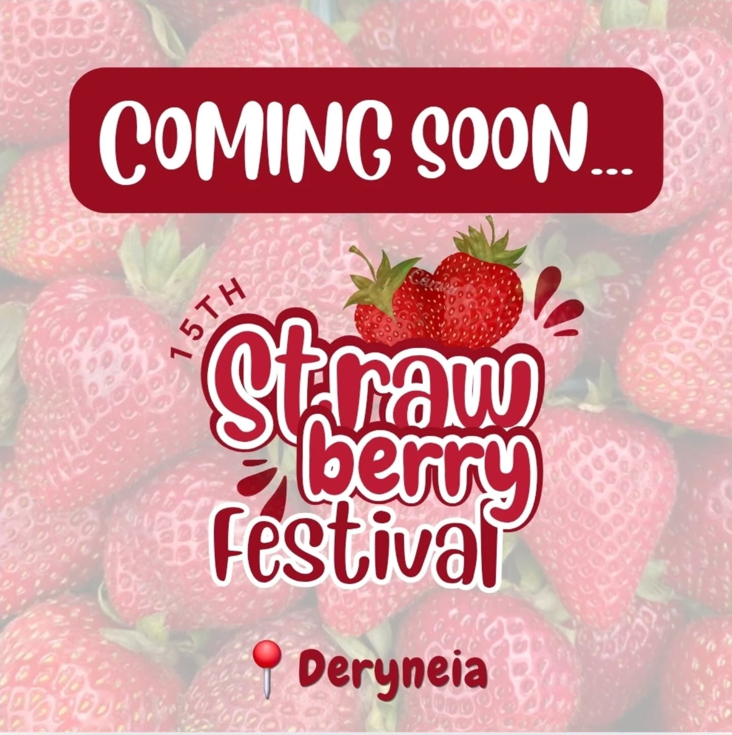 Η πιο γλυκιά γιορτή του χρόνου επιστρέφει δυναμικά! Το Φεστιβάλ Φράουλας Δερύνειας ανοίγει ξανά τις πύλες του και υπόσχεται να γεμίσει τη Δερύνεια με αρώματα, γεύσεις και χαμόγελα.