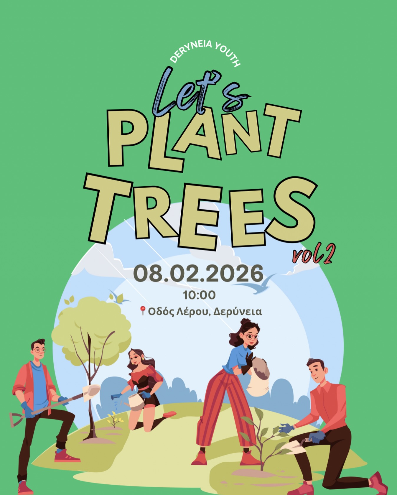 Η Νεολαία Δερύνειας επιστρέφει με τη δράση Let’s Plant Trees vol.2, συνεχίζοντας την προσπάθεια για ένα πιο πράσινο, πιο ζωντανό και πιο βιώσιμο περιβάλλον.