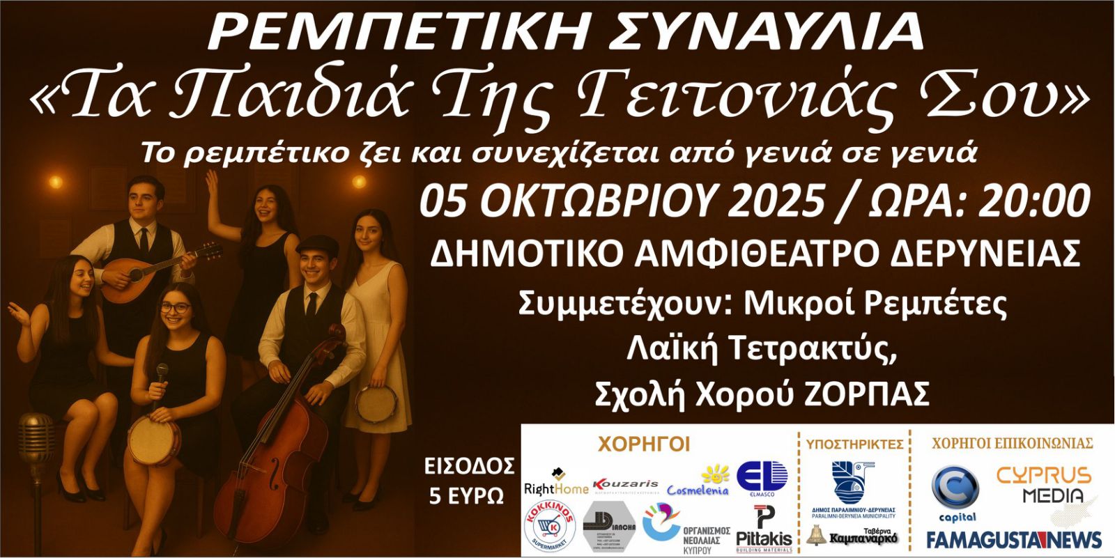 Οι Μικροί Ρεμπέτες σας προσκαλούν σε μια μοναδική ρεμπέτικη βραδιά, την Κυριακή 5 Οκτωβρίου, στις 8:00 μ.μ. στο Αμφιθέατρο Δερύνειας.