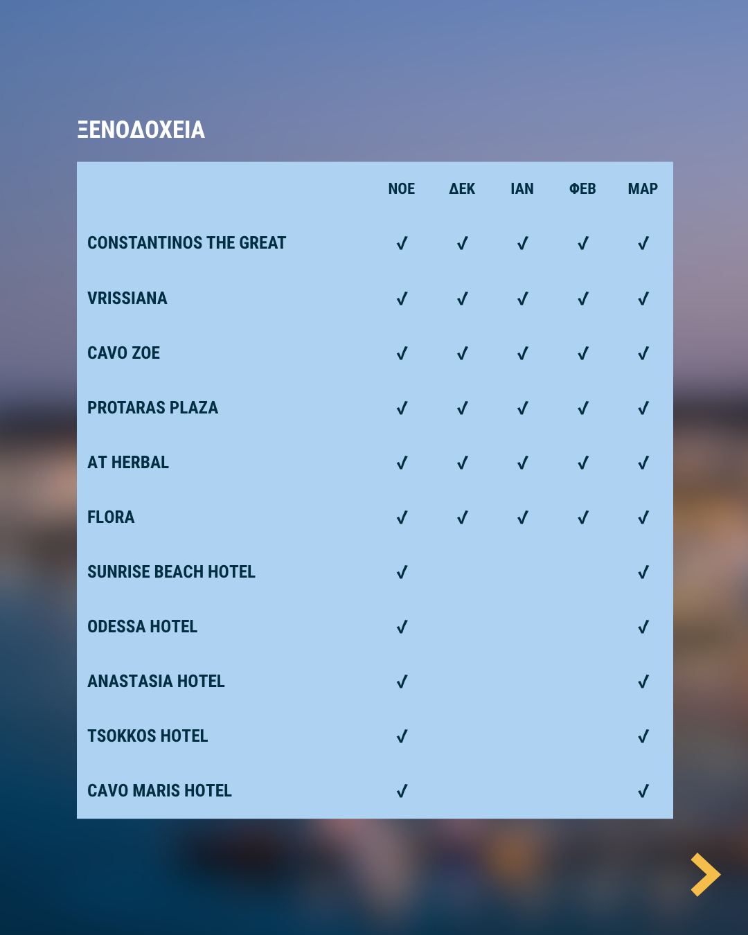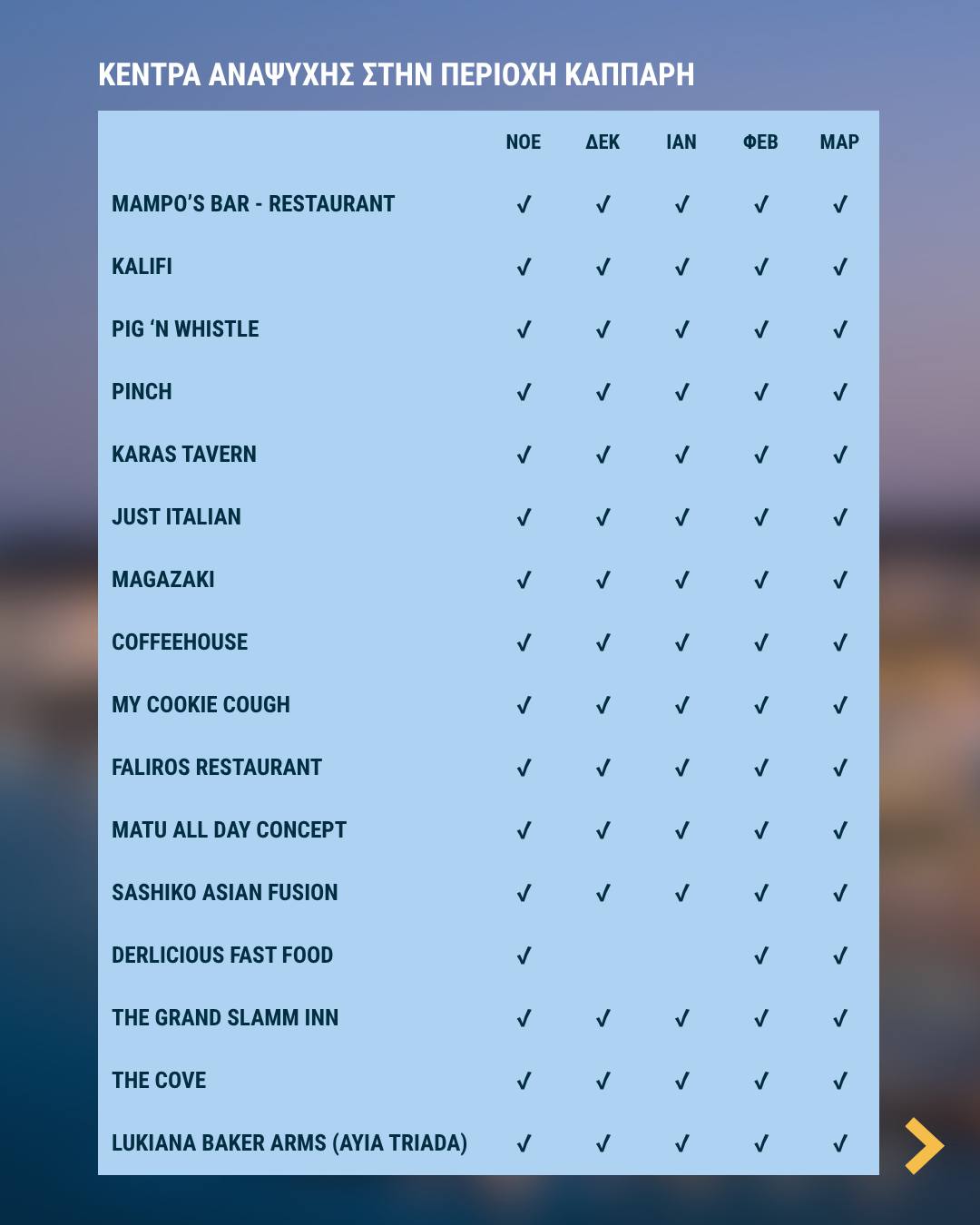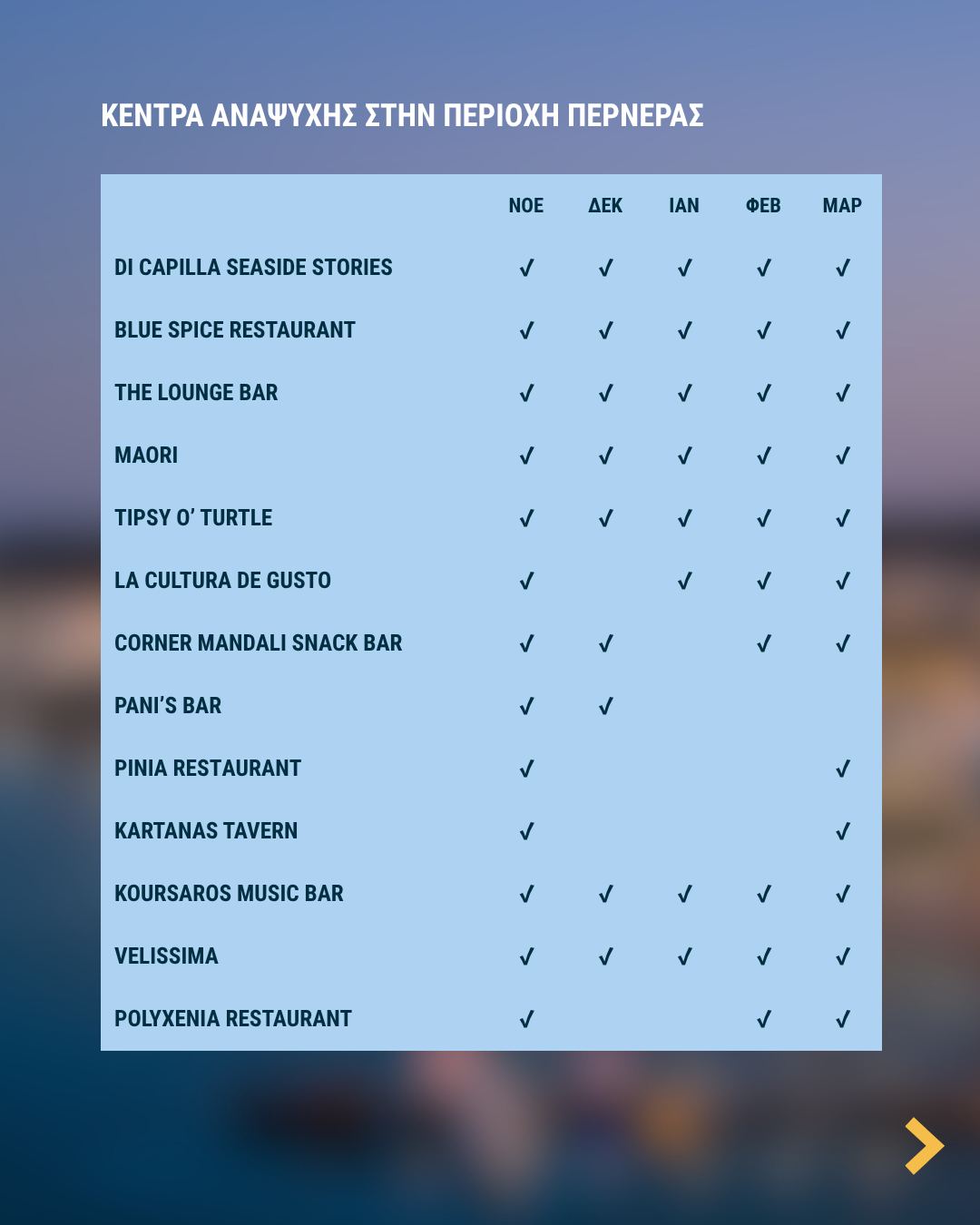 Ο Δήμος Παραλιμνίου – Δερύνειας σε συνεργασία με τον Παγκύπριο Σύνδεσμο Ξενοδόχων Αμμοχώστου και τον Σύνδεσμο Ιδιοκτητών Κέντρων Αναψυχής Αμμοχώστου, παρουσιάζουν τις ξενοδοχειακές μονάδες, τα κέντρα αναψυχής καθώς και άλλες επιχειρήσεις που θα παραμείνουν σε λειτουργία κατά τη χειμερινή περίοδο ή σε μεγάλο μέρος της περιόδου. Η ενημέρωση γίνεται στο πλαίσιο της προσπάθειας που καταβάλλει ο Δήμος σε συνεργασία με τους οργανωμένους φορείς με στόχο την επέκταση της τουριστικής περιόδου και καταπολέμηση της εποχικότητας στον τουρισμό.