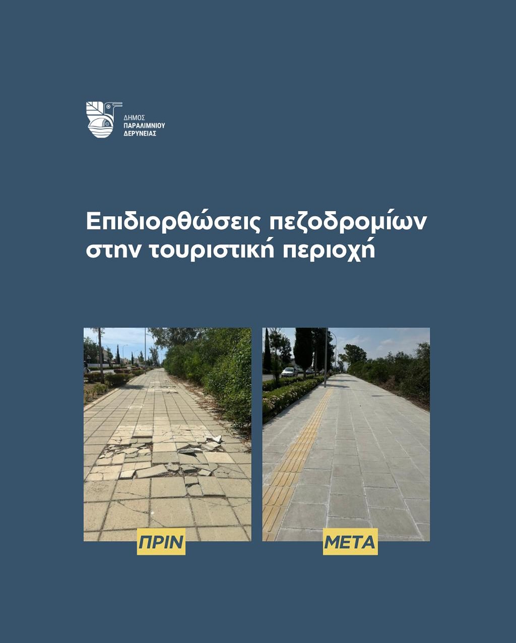 Δήμος Παραλιμνίου – Δερύνειας: Επιδιορθώθηκαν πεζοδρόμια στην τουριστική περιοχή