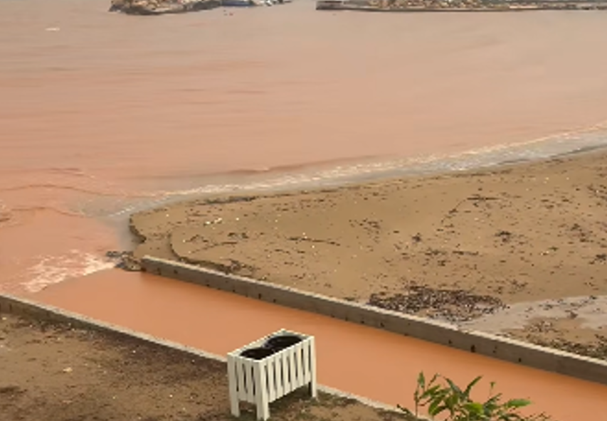 Πρόκειται για νερά της βροχής, τα οποία παρέσυραν μεγάλες ποσότητες χώματος από την ξηρά στη θάλασσα.