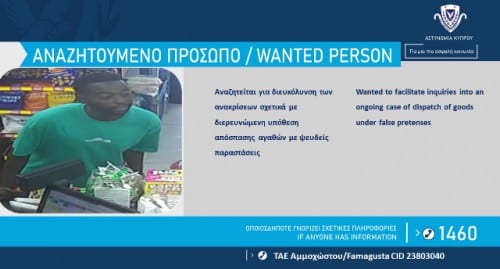 Η Αστυνομία ζητεί πληροφορίες για εντοπισμό άντρα αγνώστων στοιχείων, η φωτογραφία του οποίου δημοσιεύεται, σχετικά με διερευνώμενη υπόθεση απόσπασης αγαθών με ψευδείς παραστάσεις, αδίκημα που διαπράχθηκε στις 24 Σεπτεμβρίου, 2023 στην επαρχία Αμμοχώστου.
