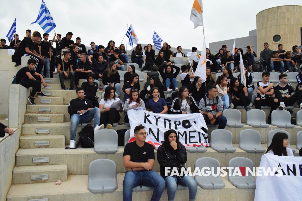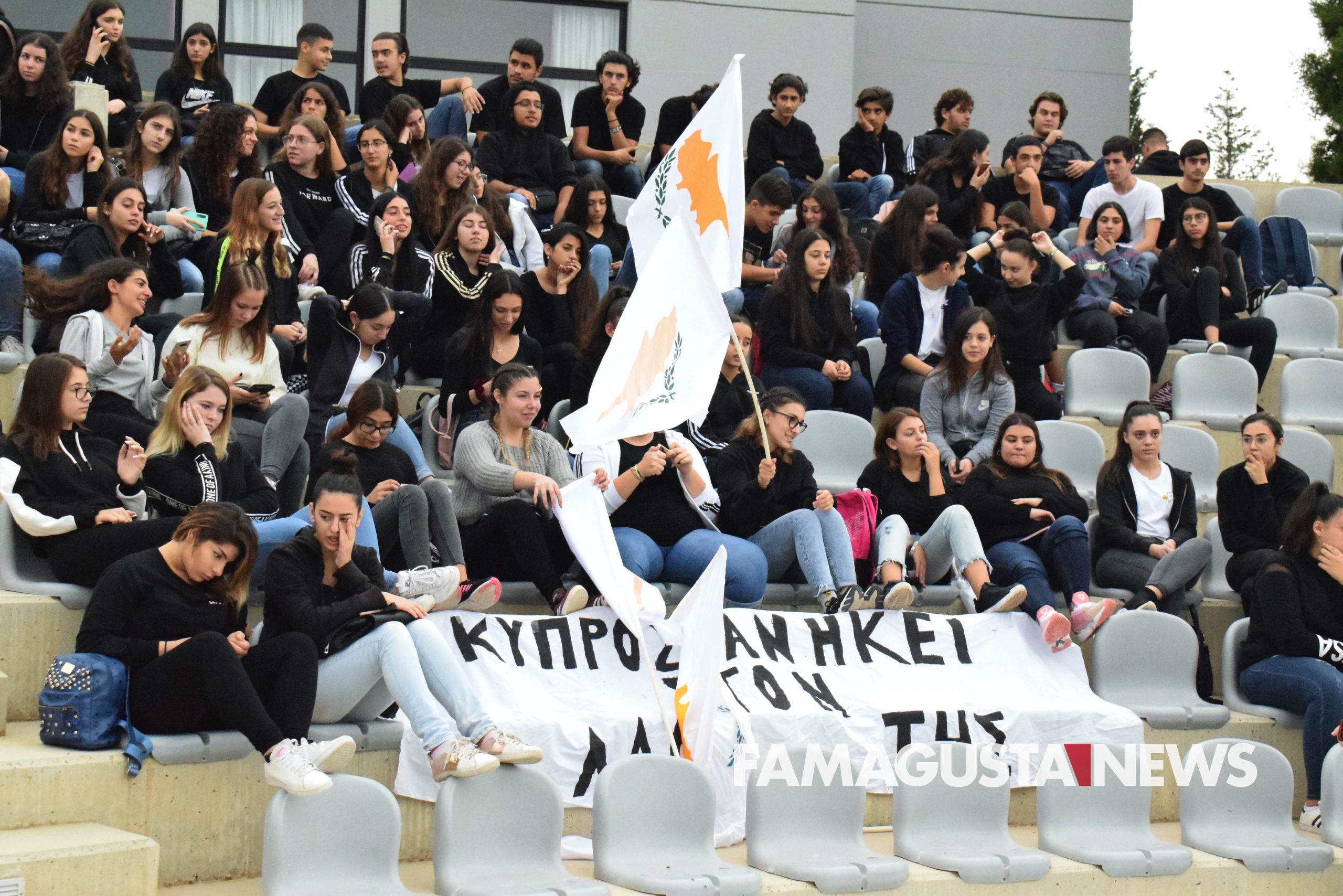 Παρά τη βροχή και τις κακές καιρικές συνθήκες, μαθητές της ΠΣΕΜ έστειλαν σήμερα το ξεκάθαρο μήνυμα πως όσοι προσπαθούν να υπονομεύσουν τις προσπάθειες επίτευξης λύσης, θα τους βρίσκουν απέναντι τους, κατά την αντικατοχική τους εκδήλωση που πραγματοποίησαν στο ανοικτό αμφιθέατρο του Κοινοτικού Συμβουλίου Φρενάρους. Παράλληλα, έδωσαν δέσμευση για συνέχιση του αγώνα μέχρι την τελική δικαίωση της Κύπρου και μέχρι την απελευθέρωση και επανένωση του τόπου και του λαού.