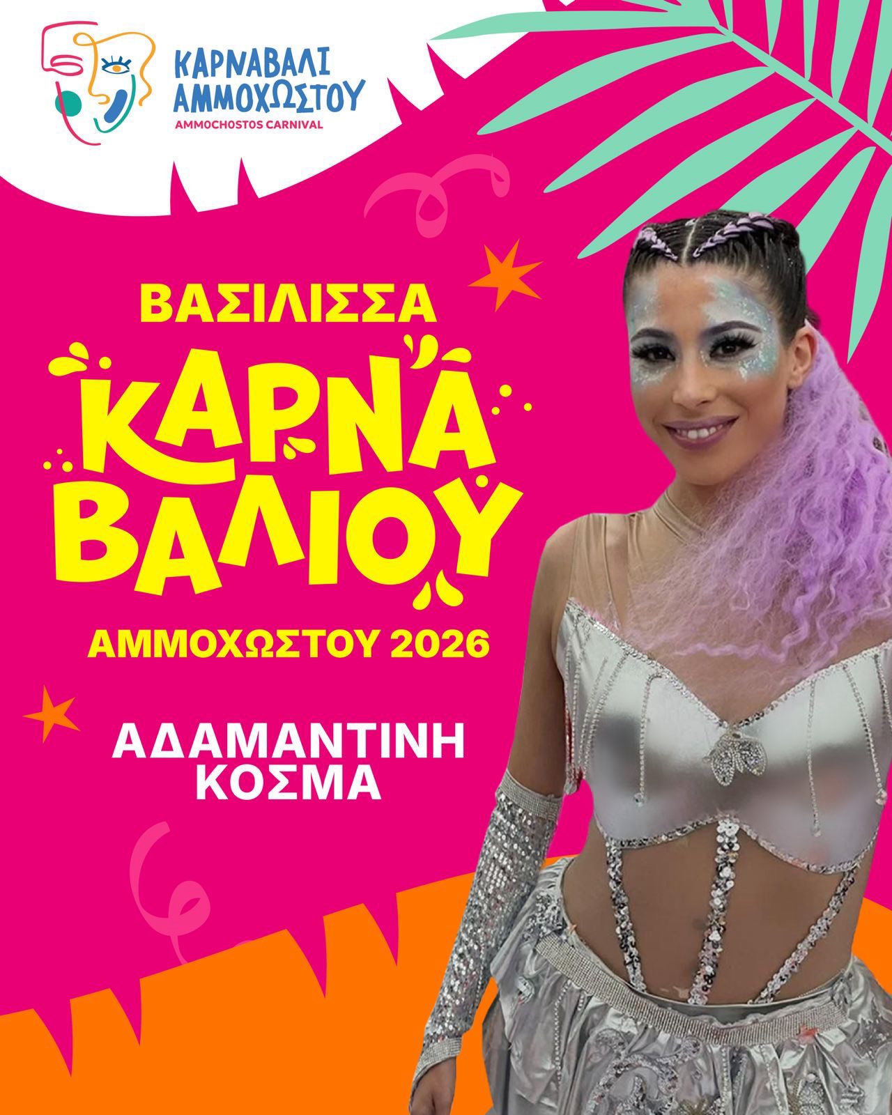 Η Αδαμαντίνη Κοσμά θα είναι η Βασίλισσα του Καρναβαλιού Αμμοχώστου 2026 με θέμα του φετινού καρναβαλιού: GRANDE CARNAVAL!
