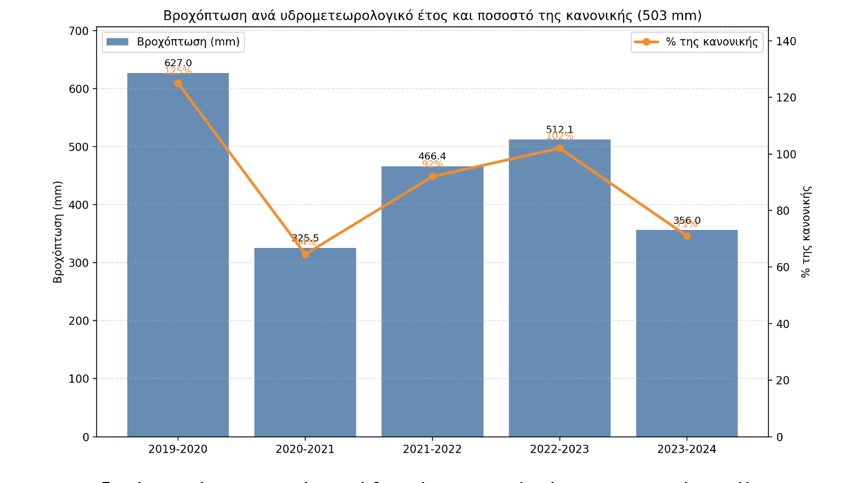 Η Κύπρος παρουσιάζει έντονη βροχομετρική αστάθεια τα τελευταία έτη. Για το υδρολογικό έτος 2023-24, η βροχόπτωση υπολείπεται του μέσου όρου, με τη χώρα να διανύει την τέταρτη συνεχή χρονιά ξηρασίας και την πληρότητα των φραγμάτων μόλις στο 10-11%.
