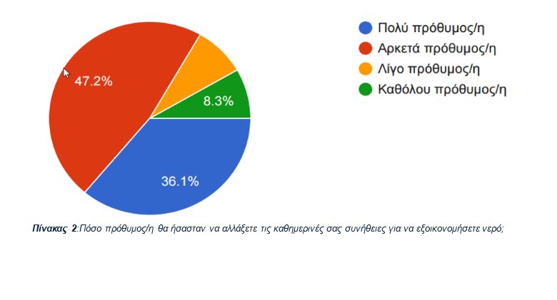 Η ανάλυση των απαντήσεων του ερωτηματολογίου, δείχνει ότι η λειψυδρία αναγνωρίζεται ως ένα σοβαρό και υπαρκτό πρόβλημα στην Κύπρο. Η πλειοψηφία των συμμετεχόντων θεωρεί ότι η λειψυδρία επηρεάζει την περιοχή σε μεγάλο βαθμό, γεγονός που καταδεικνύει αυξημένη ανησυχία της τοπικής κοινωνίας.